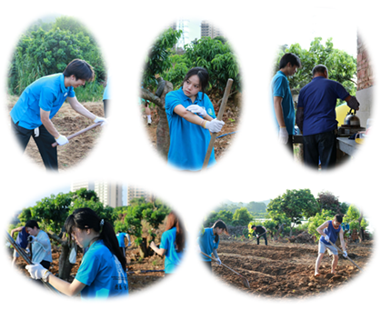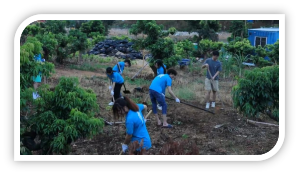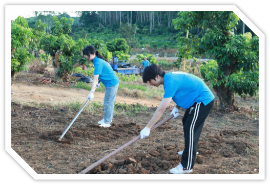 7月13日上午,突擊隊(duì)成員在指導(dǎo)老師的帶領(lǐng)下,前往陸村村郭星合作社(廣州市奕興生態(tài)園荔枝種植基地),這個(gè)基地有600多畝荔枝林,并且已有幾十畝進(jìn)行了矮化,正是實(shí)施荔枝林下立體種植涼粉草的好時(shí)機(jī)。突擊隊(duì)決定在這里開展為期1周的勞動(dòng)實(shí)踐。隊(duì)員們看著“一望無(wú)邊”的荔枝林,仿佛看到了幾個(gè)月后這里將是他們辛勤勞動(dòng)的成果,那就是荔枝林下長(zhǎng)著漫山遍野的涼粉草,頓時(shí),心中充滿喜悅!炎炎之夏也阻擋不了他們前進(jìn)的步伐與決心,所有成員全身心地投入到開墾雜草地的緊張工作中,隨著鋤頭、鏟子在揮舞在這片熱土地上,微咸的汗水伴隨著炎熱的夏風(fēng)“烙下”他們青春年華美好的回憶。種植涼粉草的實(shí)踐過(guò)程不僅會(huì)考驗(yàn)突擊隊(duì)員們的耐心、毅力和技術(shù)操作能力,也充分體現(xiàn)了他們對(duì)農(nóng)業(yè)發(fā)展與鄉(xiāng)村振興的熱情與執(zhí)著。這也為嶺南仙草突擊隊(duì),他們?cè)欣笾湎铝Ⅲw種植涼粉草的實(shí)驗(yàn)成果推廣,奠定了堅(jiān)實(shí)的基礎(chǔ)。