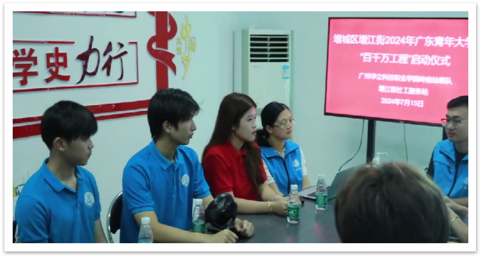 7 月 12 日上午,“嶺南仙草”突擊隊(duì)隊(duì)員們與各青年大學(xué)生代表在增城二中共同參與增江街組織的廣東青年大學(xué)生“百千萬工程”三下鄉(xiāng)啟動(dòng)儀式,見證了這一具有重要意義的時(shí)刻。