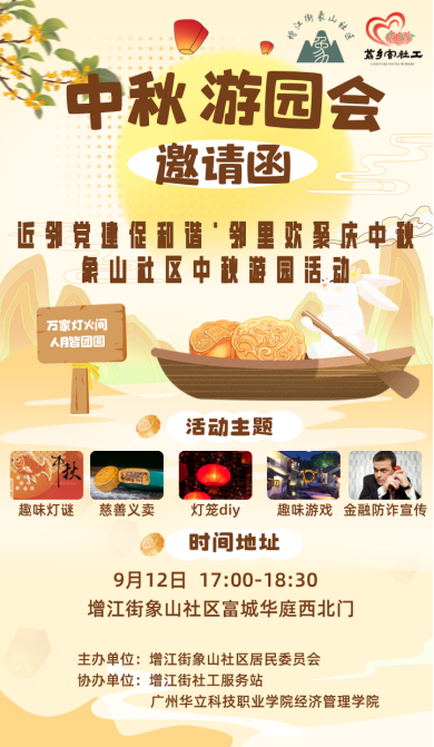 2024年9月12日,在這個秋意漸濃的時節(jié),廣州華立科技職業(yè)學(xué)院經(jīng)濟(jì)管理學(xué)院聯(lián)合增江街象山社區(qū)居民委員會、增江街社工服務(wù)站,為推動增江街“五社聯(lián)動”,促進(jìn)校地發(fā)揚(yáng)傳承中華優(yōu)良文化傳統(tǒng),提高社區(qū)居民歸屬感,共同營造友好氛圍,在象山社區(qū)舉辦了一場以“近鄰黨建促和諧,鄰里歡聚慶中秋”為主題的活動。