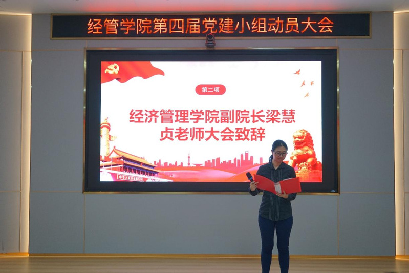 經(jīng)濟(jì)管理學(xué)院副院長梁慧貞老師為大會致辭。她首先對新加入黨建小組成員表示歡迎,并指出,黨建小組成員須勇于面對和挑戰(zhàn)困難,在實踐中不斷提升自己;積極配合各部門工作,確保黨建工作任務(wù)順利推進(jìn);同時要明確目標(biāo),端正工作態(tài)度,努力把黨建小組工作做得更好。