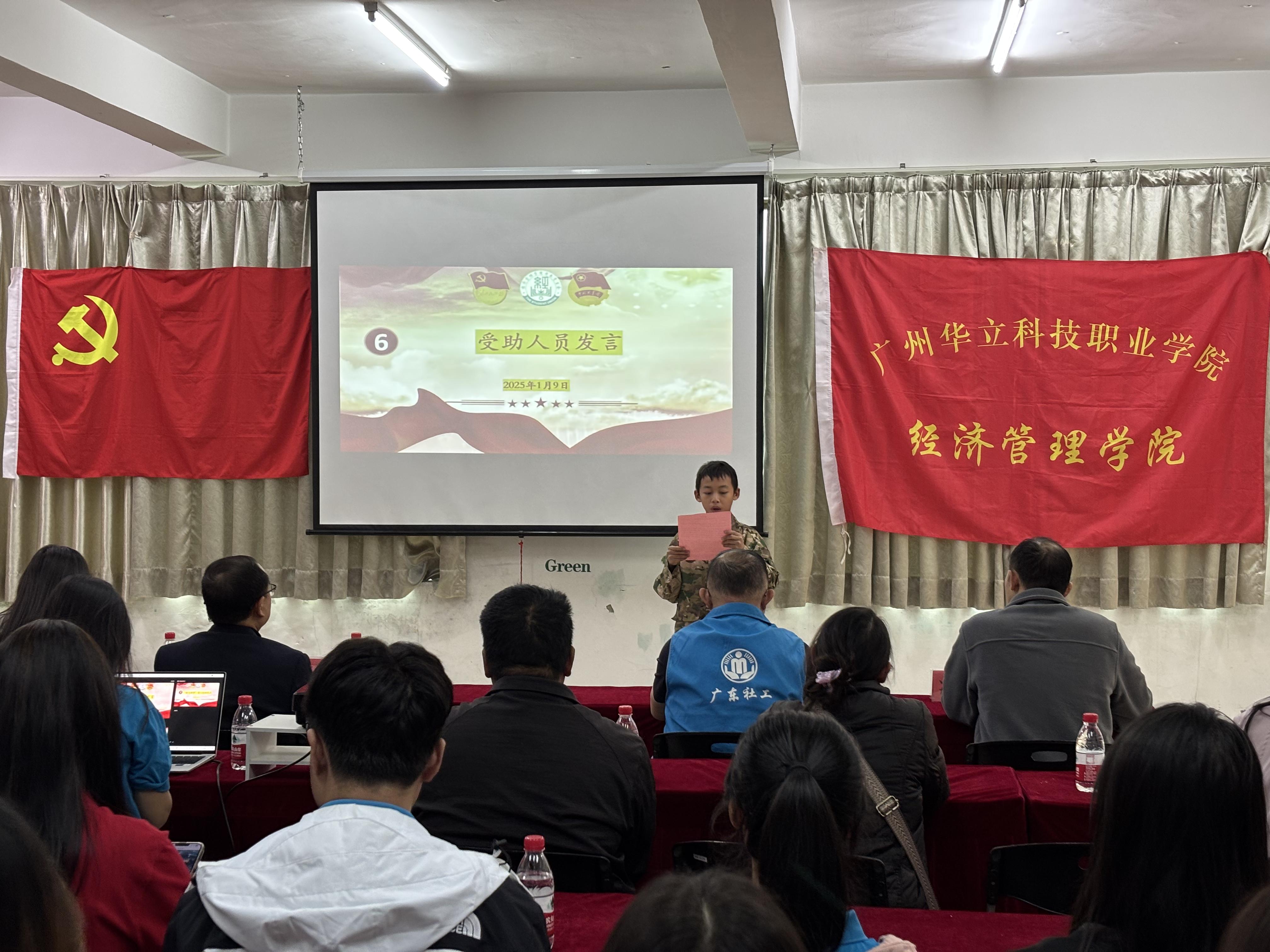 2025年1月9日下午,廣州華立科技職業(yè)學(xué)院經(jīng)濟(jì)管理學(xué)院在增城區(qū)派潭鎮(zhèn)社工站舉辦了主題為“灑下愛心、陽(yáng)光圓夢(mèng)”的鄉(xiāng)村振興幫扶活動(dòng)。此次活動(dòng)旨在響應(yīng)國(guó)家鄉(xiāng)村振興戰(zhàn)略,通過(guò)一系列幫扶舉措,為派潭鎮(zhèn)的特殊家庭和困難群體送去溫暖與希望,助力當(dāng)?shù)亟?jīng)濟(jì)社會(huì)發(fā)展。