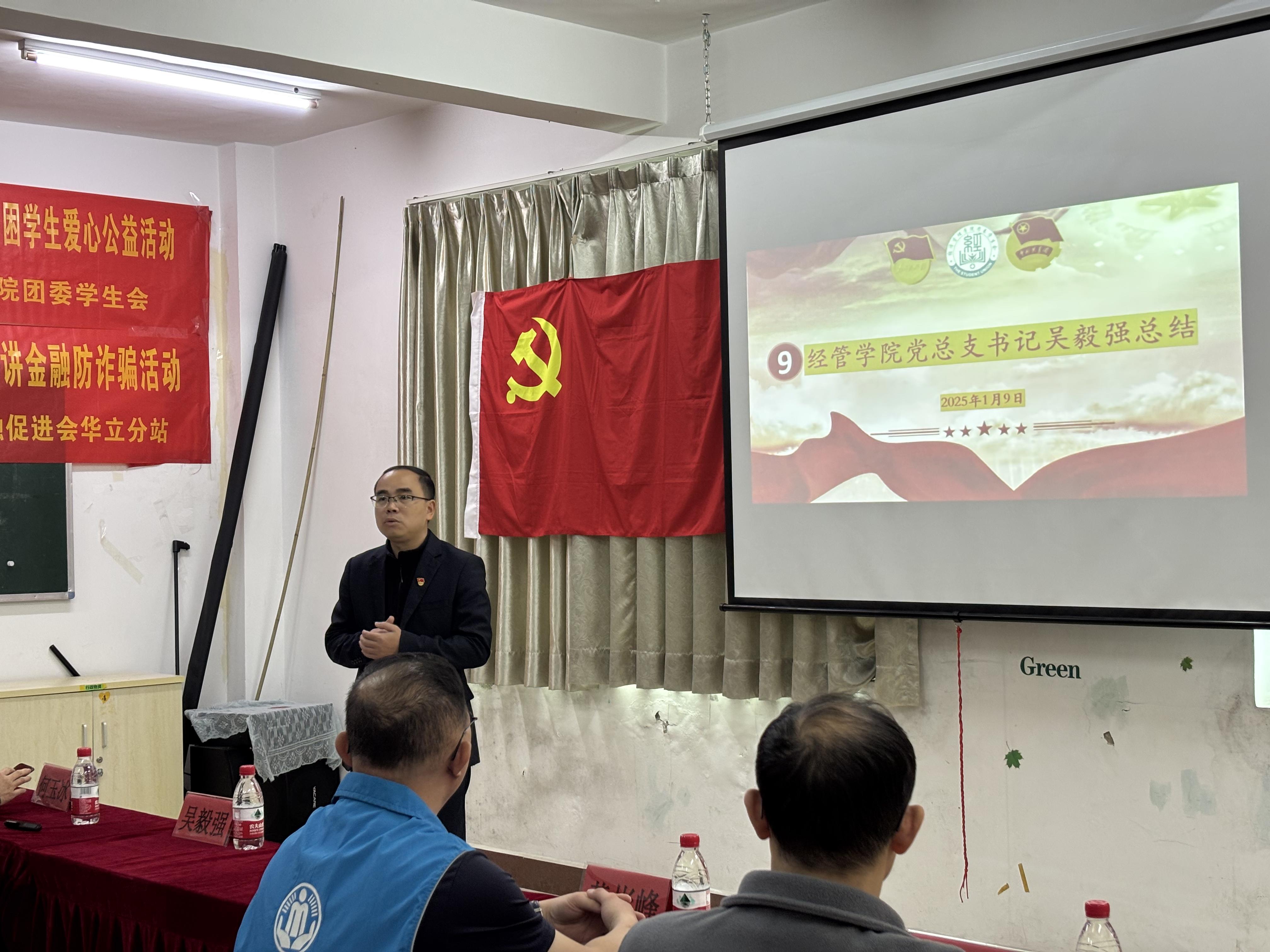 接著,經(jīng)濟(jì)管理學(xué)院教師黨支部書記楊素芹為活動(dòng)致辭。她表示,“授人以魚,不如授人以漁”是經(jīng)濟(jì)管理學(xué)院開展義務(wù)幫扶活動(dòng)的核心理念。學(xué)院將發(fā)揮專業(yè)優(yōu)勢(shì),從金融防詐騙宣傳、財(cái)務(wù)咨詢、愛心捐助等多個(gè)維度,為派潭鎮(zhèn)的村民們提供支持和幫助。她強(qiáng)調(diào),希望通過(guò)此次活動(dòng),能夠?yàn)榇迕駛儙ジ嗟闹R(shí)和技能,增強(qiáng)村民們脫貧致富的信心和能力,助力派潭鎮(zhèn)邁向更加美好的明天。