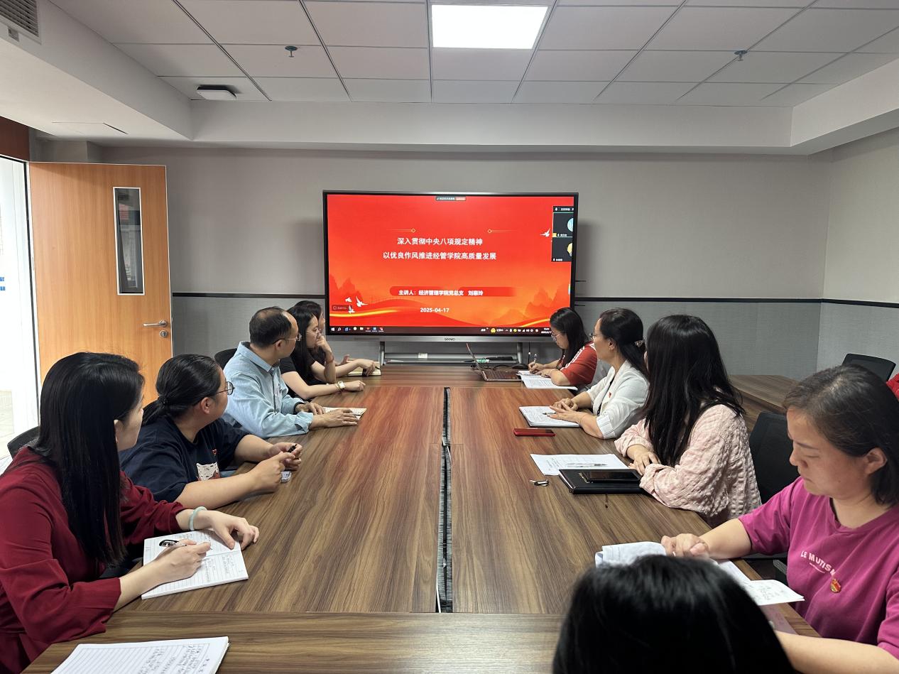 為持續(xù)深化中央八項(xiàng)規(guī)定精神貫徹落實(shí),2025年4月17日,經(jīng)濟(jì)管理學(xué)院黨總支書記劉惠玲同志在西一613開展題為《深入貫徹中央八項(xiàng)規(guī)定精神 以優(yōu)良作風(fēng)推進(jìn)經(jīng)管學(xué)院高質(zhì)量發(fā)展》的學(xué)習(xí)教育專題黨課,學(xué)院全體教師黨員參加此次學(xué)習(xí)。