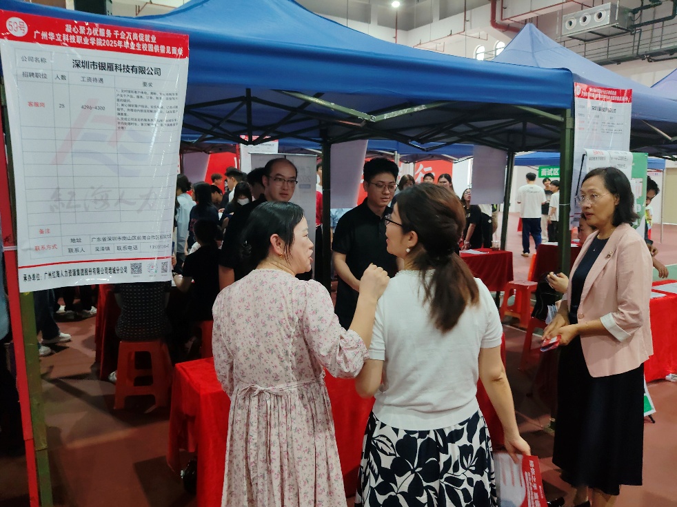 2025 年 5 月 27 日,廣州華立科技職業(yè)學(xué)院開展企業(yè)招聘活動(dòng),葉春桃校長(zhǎng)助理帶領(lǐng)經(jīng)濟(jì)管理學(xué)院院長(zhǎng)劉惠玲、副院長(zhǎng)朱向平,邀請(qǐng)深圳市銀雁科技有限公司、廣東泰迪智能科技股份有限公司入校招聘,鞏固前期訪企拓崗成果。