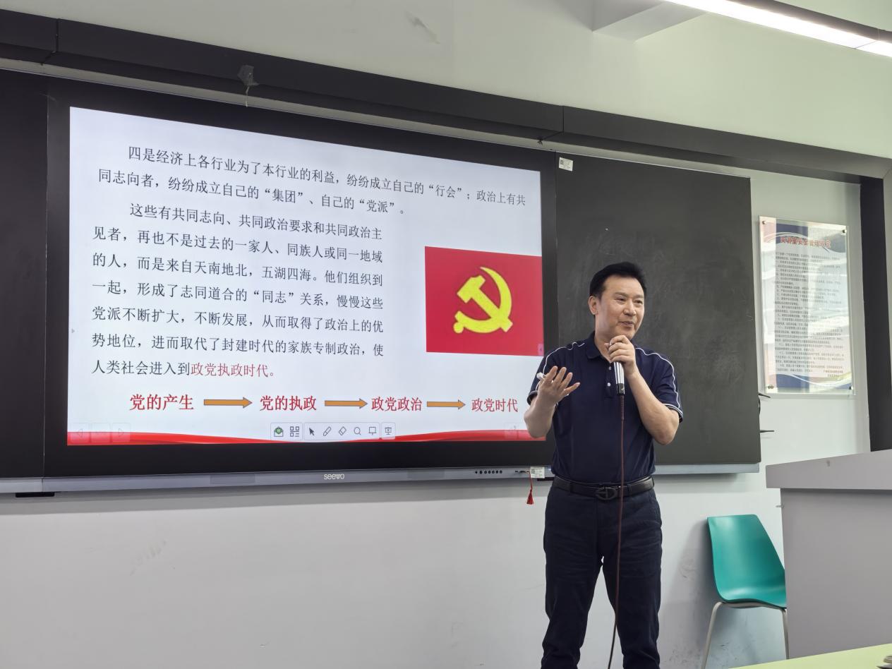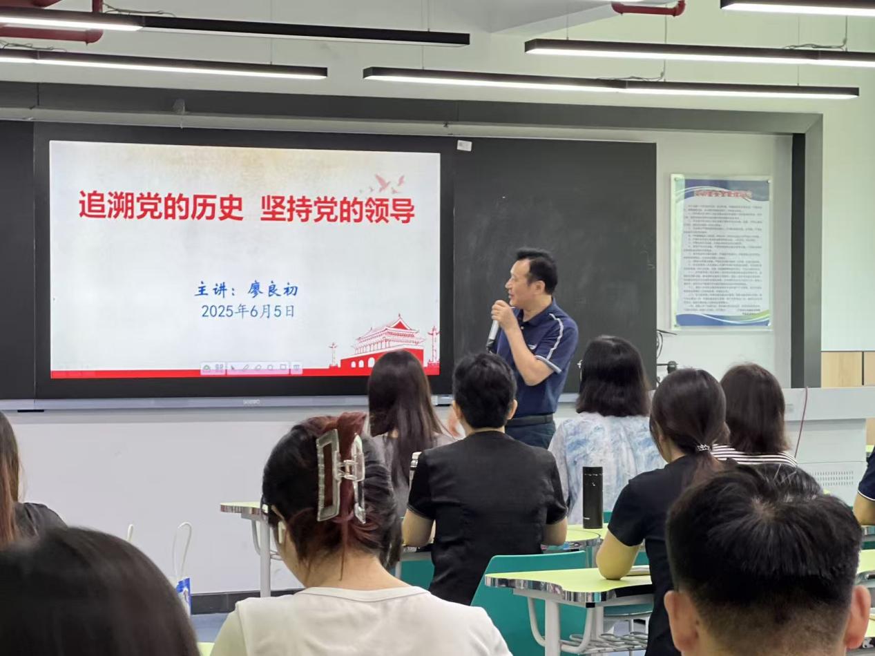 2025年6月5日上午,經(jīng)濟(jì)管理學(xué)院黨總支特邀馬克思主義學(xué)院院長廖良初教授,于西三-211為學(xué)院全體師生黨員及入黨積極分子講授一堂深刻而精彩的專題黨課,本次黨課由學(xué)院黨總支書記劉惠玲主持。