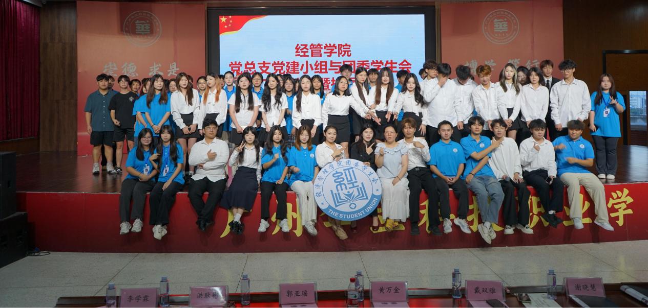 為加強(qiáng)學(xué)生組織建設(shè),推動(dòng)學(xué)院團(tuán)學(xué)工作高質(zhì)量發(fā)展,2025年6月25日下午,經(jīng)濟(jì)管理學(xué)院在圖書(shū)館八樓報(bào)告廳隆重召開(kāi)團(tuán)委學(xué)生會(huì)總結(jié)暨換屆大會(huì)。學(xué)院黨總支書(shū)記兼院長(zhǎng)劉惠玲、學(xué)管主任謝曉慧、全體輔導(dǎo)員們以及各組織代表、班級(jí)代表、團(tuán)委學(xué)生會(huì)全體成員共同見(jiàn)證新老交替的重要時(shí)刻。