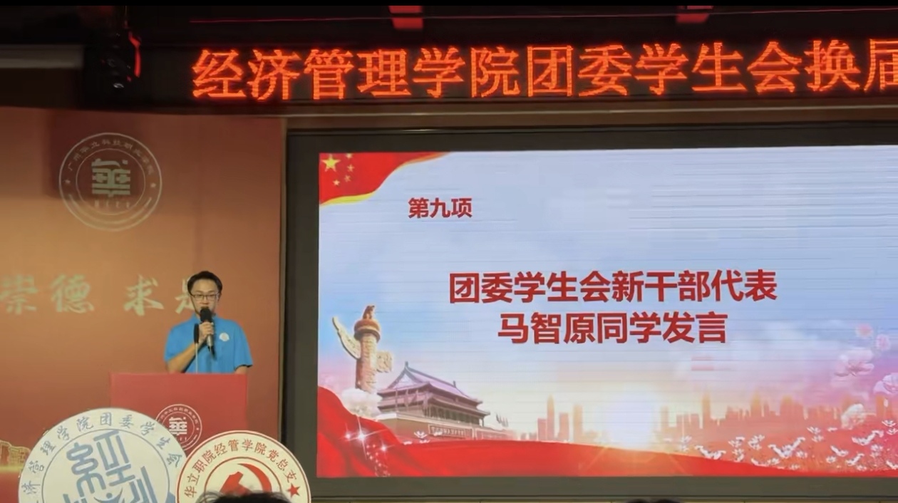 第三屆主席團(tuán)代表陳志紅同學(xué)以"接力棒"為喻,指出“傳承的是經(jīng)管人永不言棄的精神基因”;新任干部代表馬智原則誓言“以數(shù)字化轉(zhuǎn)型思維開(kāi)拓工作新局面”。會(huì)議現(xiàn)場(chǎng)宣讀了新一屆干部名單及2024—2025學(xué)年度團(tuán)務(wù)工作表彰名單,希望被表彰的同學(xué)們能在攀登中奉獻(xiàn)青春,在實(shí)干中彰顯擔(dān)當(dāng)。