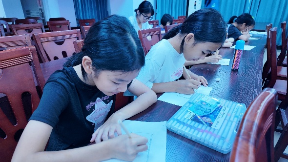 在繪畫環(huán)節(jié)中,隊員們?yōu)楹⒆觽儼l(fā)放了畫紙、畫筆,耐心地指導繪畫步驟及細節(jié),同時鼓勵大家自由發(fā)揮。隊員們一邊講解畫法,一邊穿插小知識:“貨幣上的圖案大多是國家的標志性建筑、風景或文化符號,體現(xiàn)著國家特色,必須要認真對待?!焙⒆觽冊诶L畫過程中不僅鍛煉了繪畫技巧,還了解了貨幣背后的文化內(nèi)涵。