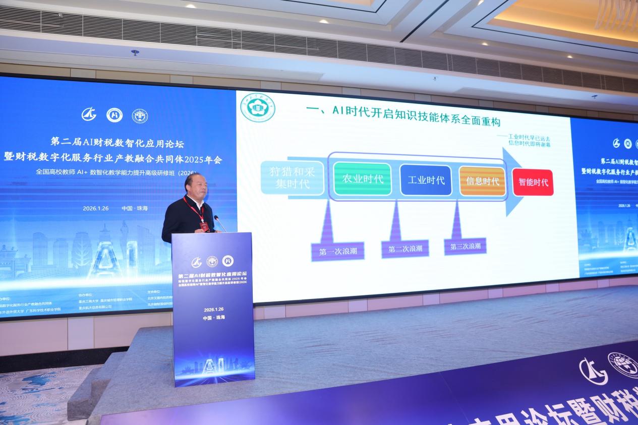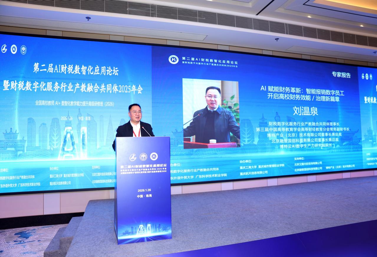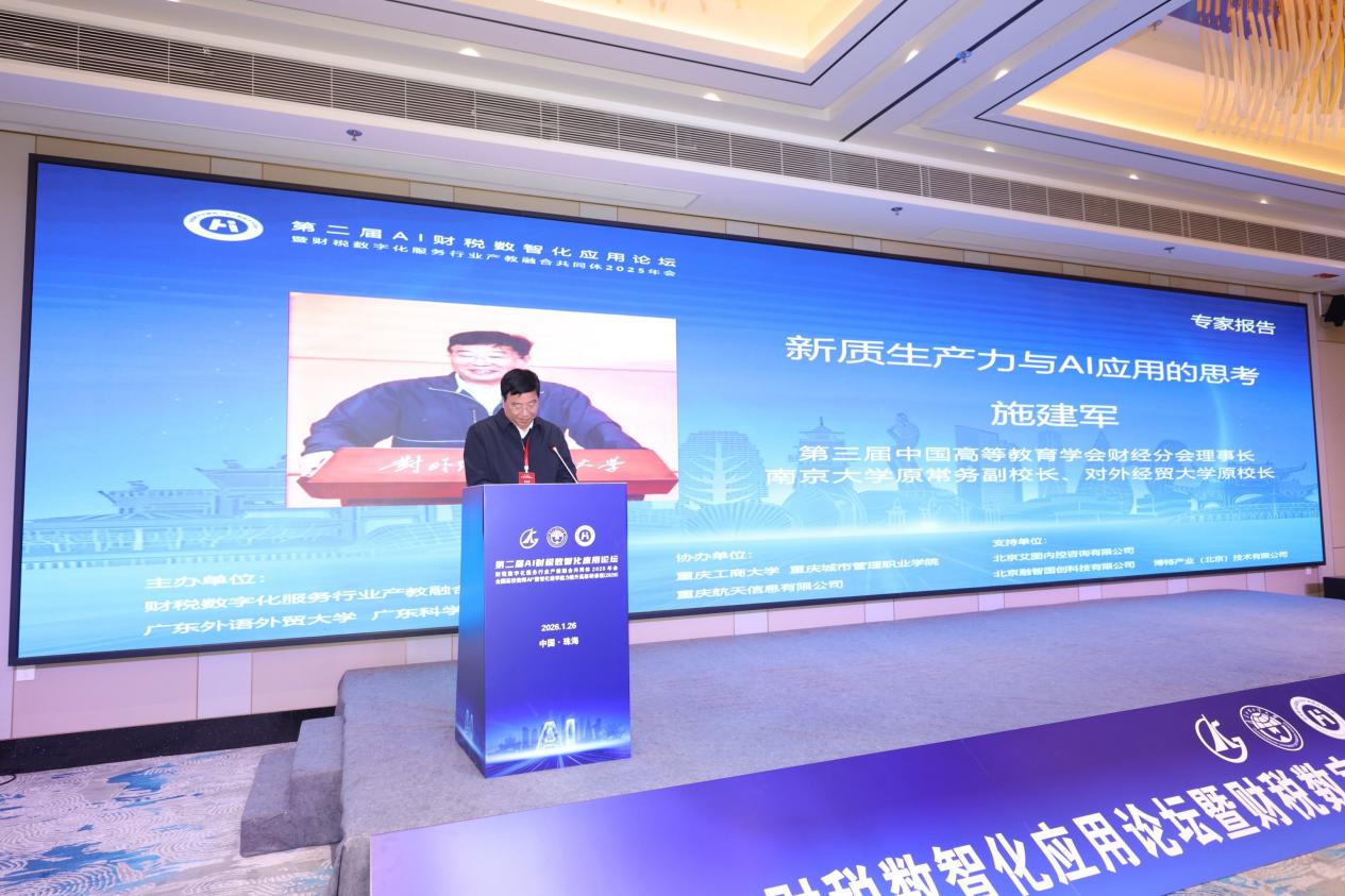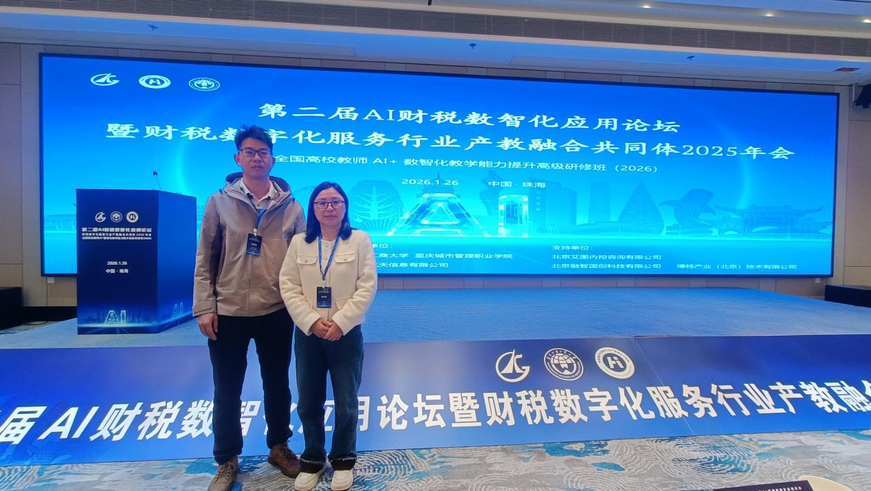 2026年1月26日,第二屆AI財(cái)稅數(shù)智化應(yīng)用論壇暨財(cái)稅數(shù)字化服務(wù)行業(yè)產(chǎn)教融合共同體2025年會(huì)在珠海成功舉辦。本次論壇由財(cái)稅數(shù)字化服務(wù)行業(yè)產(chǎn)教融合共同體、廣東外語(yǔ)外貿(mào)大學(xué)和廣東科學(xué)技術(shù)職業(yè)學(xué)院聯(lián)合主辦,來(lái)自全國(guó)高校、企業(yè)和研究機(jī)構(gòu)的專家學(xué)者齊聚一堂,共同探討AI與財(cái)稅數(shù)字化融合發(fā)展路徑。我校經(jīng)濟(jì)管理學(xué)院何玉冰、陳湛通兩位教師代表學(xué)校應(yīng)邀參會(huì)。