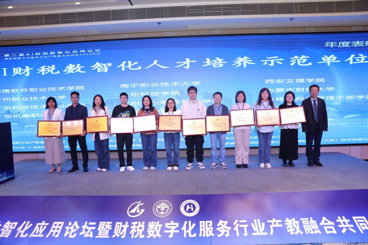 圖10 我校榮獲“AI財(cái)稅數(shù)智化人才培養(yǎng)示范單位”稱號(hào)