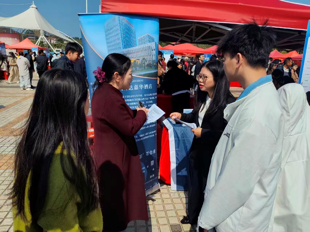 在與服務(wù)業(yè)企業(yè)的對(duì)接中,交流同樣務(wù)實(shí)高效。廣州增城富力萬達(dá)嘉華酒店人事主管蔡倩婷詳細(xì)介紹了酒店當(dāng)前的前廳、餐飲及行政等崗位的招聘計(jì)劃,雙方就如何提升學(xué)生服務(wù)行業(yè)就業(yè)意愿及職業(yè)發(fā)展路徑進(jìn)行了溝通。廣州沃夫曼管理有限公司人事經(jīng)理吳凱娜則重點(diǎn)介紹了公司在企業(yè)管理咨詢、市場(chǎng)運(yùn)營(yíng)等方面的用人標(biāo)準(zhǔn)。