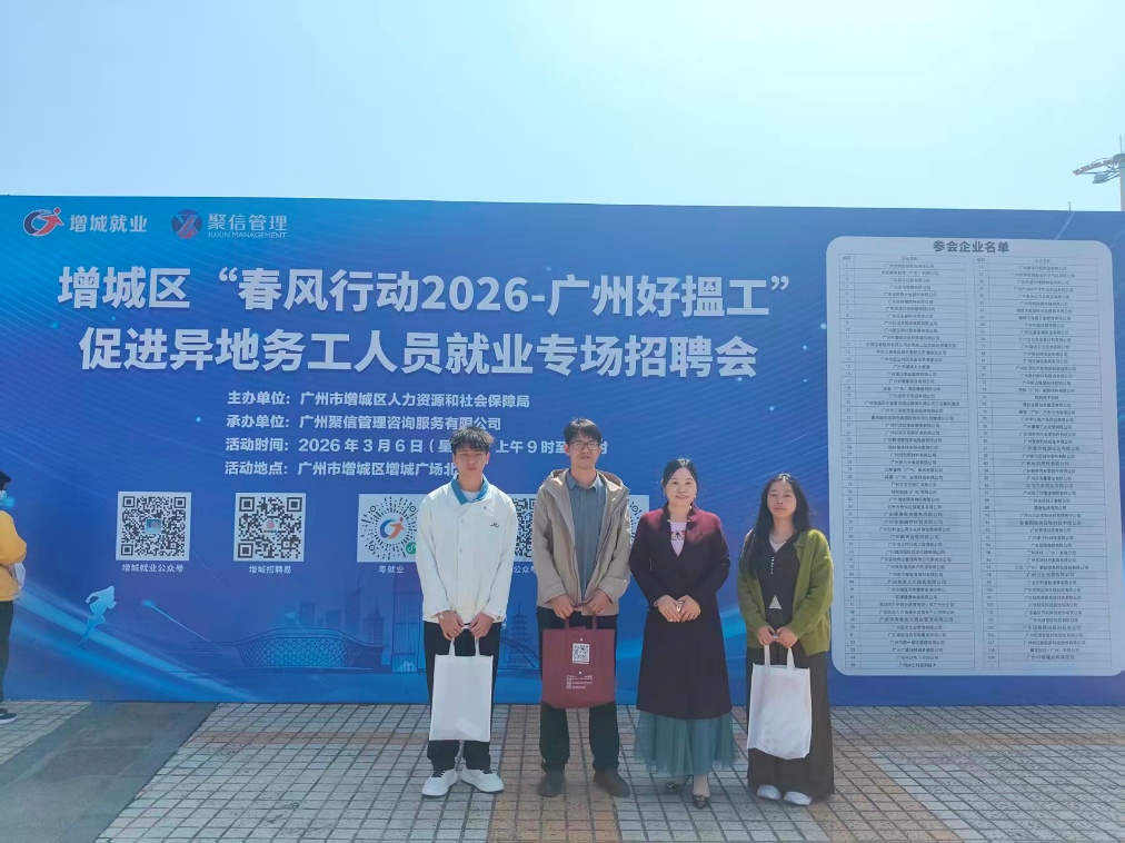 為持續(xù)推進(jìn)訪企拓崗促就業(yè)專項(xiàng)行動(dòng),深化校企合作,拓寬畢業(yè)生就業(yè)渠道,3月6日上午,經(jīng)濟(jì)管理學(xué)院副院長(zhǎng)朱向平帶隊(duì),前往增城區(qū)“春風(fēng)行動(dòng)2026——廣州好搵工促進(jìn)異地務(wù)工人員就業(yè)專場(chǎng)招聘會(huì)”現(xiàn)場(chǎng),主動(dòng)對(duì)接企業(yè)用人需求,積極為畢業(yè)生挖掘優(yōu)質(zhì)崗位資源。