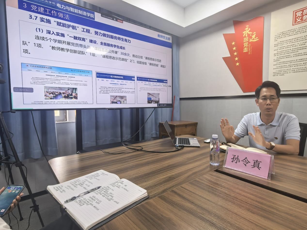 電力與智能制造學(xué)院教師黨支部書記孫令真詳細介紹了省級黨建工作樣板支部的創(chuàng)建做法。他重點講解了支部打造的“123477”黨建創(chuàng)優(yōu)工程,從核心引領(lǐng)、基本保障、建設(shè)重點、特色載體等方面,系統(tǒng)闡述了黨支部治理體制機制的構(gòu)建過程。同時,他介紹了支部深入開展“儒雅電力人”文化育人黨建品牌建設(shè),構(gòu)建大思政育人格局的具體舉措,為參會人員提供了可借鑒、可復(fù)制的實踐經(jīng)驗。