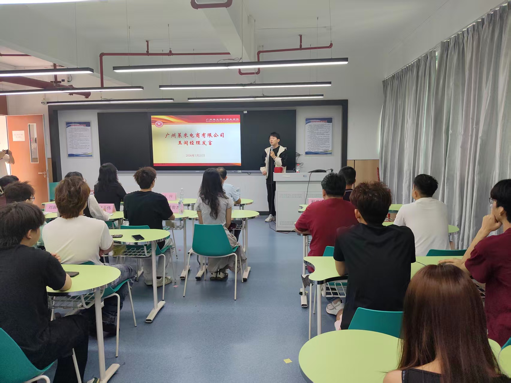 隨后,萊米公司總經(jīng)理王闖致辭。他對(duì)學(xué)院師生的到來表示熱烈歡迎,并介紹了公司的發(fā)展概況及電商行業(yè)的前沿動(dòng)態(tài)。他表示,公司將全力為同學(xué)們提供優(yōu)質(zhì)的實(shí)踐平臺(tái)和專業(yè)的指導(dǎo)支持,期待大家在真實(shí)業(yè)務(wù)場景中學(xué)有所獲、快速成長。