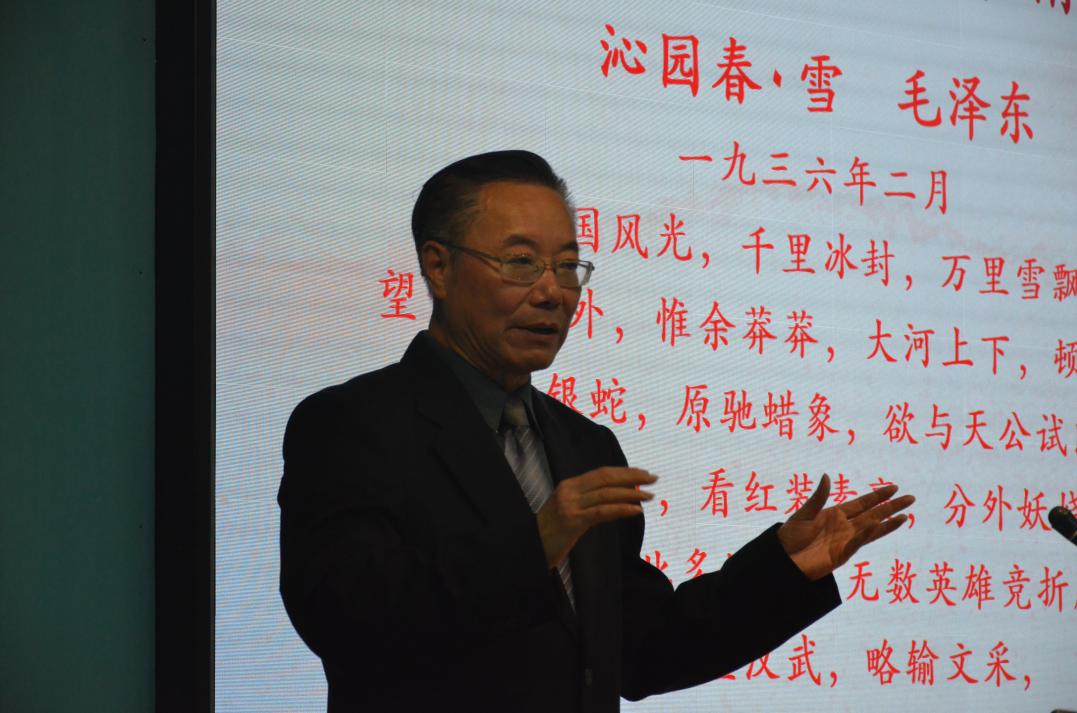 林偉健書記以《弘揚紅色精神 煥發(fā)青春熱情—從毛澤東詩詞中學(xué)中共黨史》為題,重點圍繞“偉大建黨精神構(gòu)建起了中國共產(chǎn)黨人的精神譜系”、“毛澤東詩詞中的偉大精神”、“偉人的風(fēng)采和情懷,激勵著我們奮進新時代”三個方面展開,通過對毛主席詩詞的解讀和賞析,讓大家從毛主席詩詞的創(chuàng)作背景、詩歌內(nèi)容、思想內(nèi)涵等方面,一起重溫黨的光輝歷史和豐功偉績,領(lǐng)略共產(chǎn)黨人的理想信念和初心使命,體悟先賢們深厚的愛國情懷和勇敢的責(zé)任擔(dān)當(dāng)。林書記以平實親切的語言,鏗鏘有力的語調(diào),向同學(xué)們娓娓道來中國共產(chǎn)黨一路走來篳路藍(lán)縷的艱辛歷程,引導(dǎo)從紅色詩詞中感悟中國共產(chǎn)黨的百年奮斗歷程,深入領(lǐng)會中國共產(chǎn)黨人的革命精神與革命斗志,讓紅色詩詞激蕩心靈,堅定新時代青年學(xué)生的理想信念,樹立遠(yuǎn)大理想;厚植愛國情懷,筑牢信仰之基。