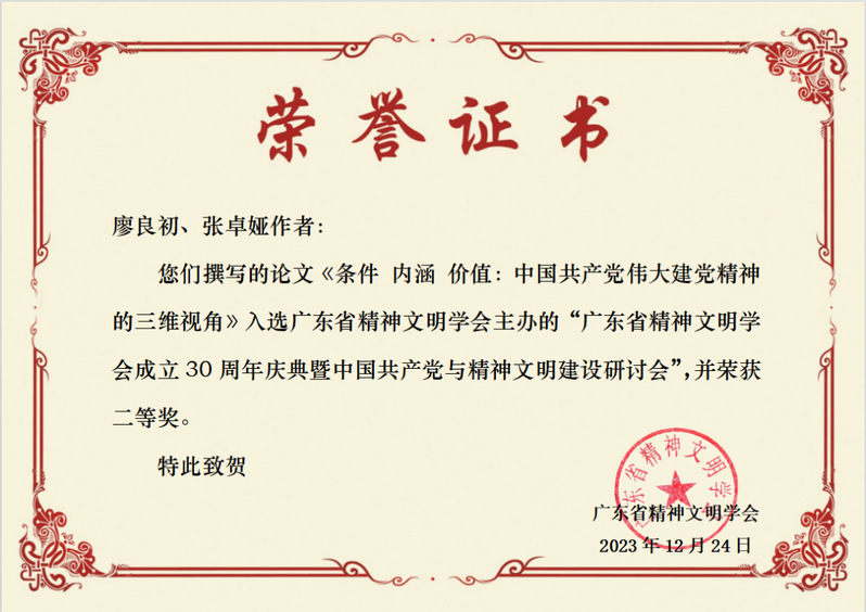 本次研討會共收到學(xué)術(shù)論文80余篇,經(jīng)專家評定出一等獎10篇、二等獎12篇,三等13篇。我院廖良初教授、張卓婭副教授撰寫的《條件.內(nèi)涵.價值:中國共產(chǎn)黨偉大建黨精神的三維視角》一文榮獲二等獎。兩位教授作為獲獎代表受邀參加了此次研討會,并在大會上作學(xué)術(shù)交流。