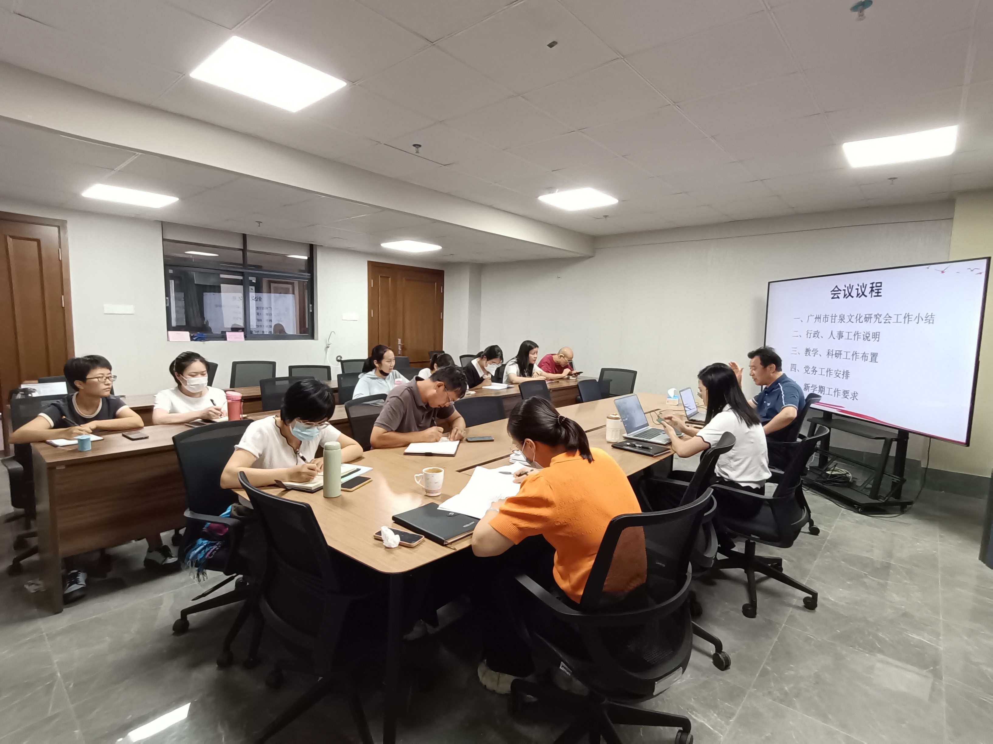 最后,廖院長(zhǎng)對(duì)新學(xué)期工作提出三點(diǎn)要求。一是加強(qiáng)學(xué)習(xí)。作為思政課教師,要不斷加強(qiáng)黨的二十屆三中全會(huì)精神的學(xué)習(xí),用黨的創(chuàng)新理論武裝頭腦,確保其進(jìn)頭腦、進(jìn)教材、進(jìn)課堂。加強(qiáng)專業(yè)基礎(chǔ)知識(shí)、馬克思主義理論一級(jí)學(xué)科知識(shí)的學(xué)習(xí)。二是加強(qiáng)研究。廣泛開(kāi)展教學(xué)內(nèi)容、教學(xué)方法、教學(xué)手段等的研究。要依托廣州市甘泉文化研究會(huì)這個(gè)大平臺(tái),積極開(kāi)展科學(xué)研究,大家要多撰寫論文、開(kāi)展課題申報(bào)研究工作。三是加強(qiáng)團(tuán)結(jié)。隨著學(xué)院的快速發(fā)展,隊(duì)伍的不斷壯大,大家要心往一處想,勁往一處使,擰成一股繩,鉚足一股勁,共同為學(xué)院的發(fā)展貢獻(xiàn)力量。