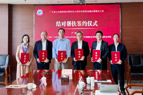 11月21日上午,廣州大學(xué)結(jié)對幫扶五所民辦高校思政課建設(shè)簽約儀式在廣州大學(xué)城校區(qū)行政西樓后座612室舉行。廣州大學(xué)黨委常委、副校長吳開俊與黨委辦公室、宣傳部、教師工作部、教務(wù)處、科研處、馬克思主義學(xué)院等部門負(fù)責(zé)人,和所結(jié)對幫扶的廣州理工學(xué)院、廣州軟件學(xué)院、廣州城建職業(yè)學(xué)院、廣州華夏職業(yè)學(xué)院等校的黨委書記及馬克思主義學(xué)院負(fù)責(zé)人參加。我校黨委書記陳良聲、馬克思主義學(xué)院院長廖良初、黨委組織部副部長陳曉薇參加。簽約儀式由廣州大學(xué)馬克思主義學(xué)院黨委書記羅明星主持。