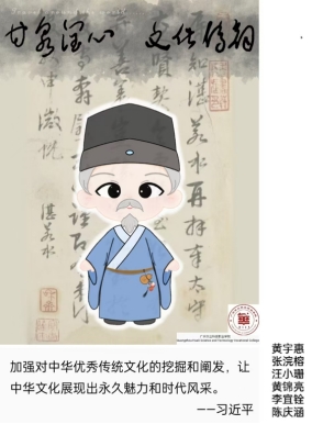學(xué)生們在了解湛若水生平事跡的基礎(chǔ)上,對其進行了藝術(shù)化地創(chuàng)作和加工。他們塑造出鮮明獨特的湛若水形象,使其文化精神得以具象化,易于公眾接受和喜愛。此外,他們還學(xué)習(xí)優(yōu)秀文創(chuàng)IP的推廣策略,初步設(shè)計了系列周邊文化產(chǎn)品,打造出年輕人喜愛的甘泉文化形象,為傳承湛若水思想與甘泉文化貢獻一份力量。