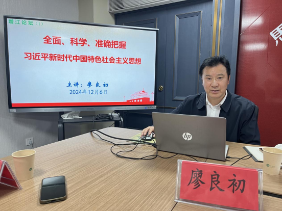 12月6日,在增江論壇的發(fā)布會上,馬克思主義學(xué)院院長廖良初教授擔(dān)任“增江論壇”第一講主講人。他以《全面、科學(xué)、準(zhǔn)確把握習(xí)近平新時(shí)代中國特色社會主義思想》為主題報(bào)告,圍繞深入學(xué)習(xí)貫徹習(xí)近平新時(shí)代中國特色社會主義思想進(jìn)行學(xué)習(xí)研究的經(jīng)驗(yàn)體會分享。從“中國特色社會主義”概念的提出及其重大意義,到毛澤東、鄧小平、江澤民、胡錦濤對中國特色社會主義的闡述與理論貢獻(xiàn);從我們黨自十八大以來將黨的創(chuàng)新理論稱之為習(xí)近平新時(shí)代中國特色社會主義思想,到習(xí)近平新時(shí)代中國特色社會主義思想的科學(xué)內(nèi)涵、核心要義與實(shí)踐要求進(jìn)行了全面闡述。報(bào)告聚焦主題,史論結(jié)合,系統(tǒng)梳理,深入解讀,生動詮釋,既是一堂精心的理論宣講,又是一場生動的學(xué)術(shù)分享,為大家帶來了一次與平時(shí)政治學(xué)習(xí)不盡一樣的收獲與感受,讓全體教師尤其是年輕教師深受教益。