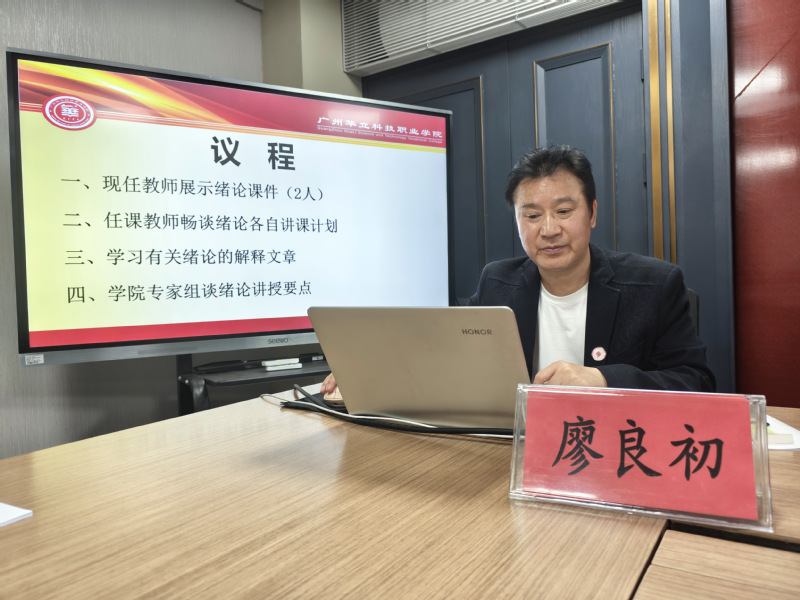 備課現(xiàn)場,由王繼東老師首先展示“緒論”PPT課件并講解授課思路。在聽取“緒論”課件及重要內(nèi)容解析后,廖良初院長從三個方面提出建設(shè)性意見:一是要注重“緒論”部分交待3個問題:即講清《思想道德與法治》課的課程性質(zhì)、課程體系、課程內(nèi)容;講清當代大學(xué)生為什么要開設(shè)《思想道德與法治》課,這門課對大學(xué)生有什么作用和意義;講清當代大學(xué)生怎樣學(xué)好這門課程、老師有什么要求。二是要注重素材選取的黏合性,即采用“案例鏈+問題鏈”雙鏈驅(qū)動模式,可通過“華立新青年”公眾號提供的我校師生中的鮮活素材提升教學(xué)黏性,備課要做好三備,即備教材、備學(xué)生、備社會;三是要注重把握好教學(xué)內(nèi)容的邏輯結(jié)構(gòu),教案、課件既要緊扣新版教材的理論框架,又要有機融合時政素材,實現(xiàn)教材體系向教學(xué)體系的創(chuàng)造性轉(zhuǎn)化。