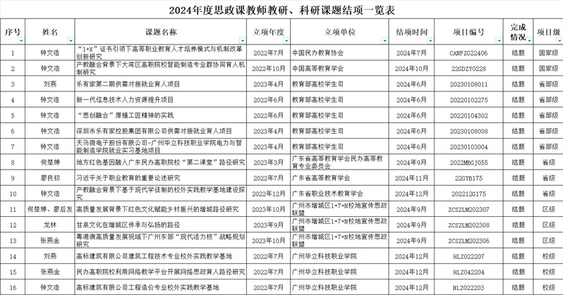 2024年度思政課教師教研、科研課題結(jié)項(xiàng)一覽表