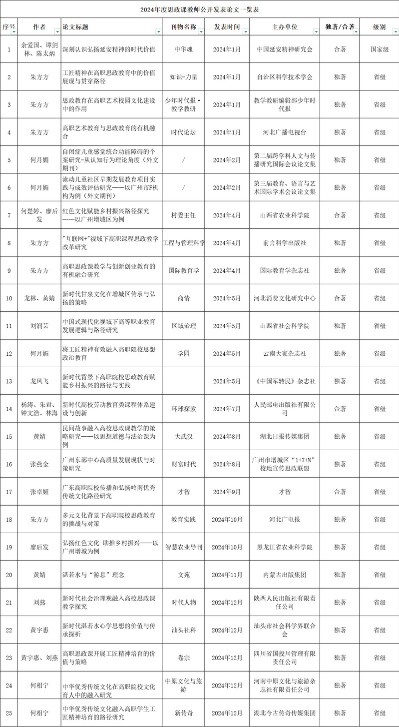 2024年度思政課教師公開發(fā)表論文一覽表