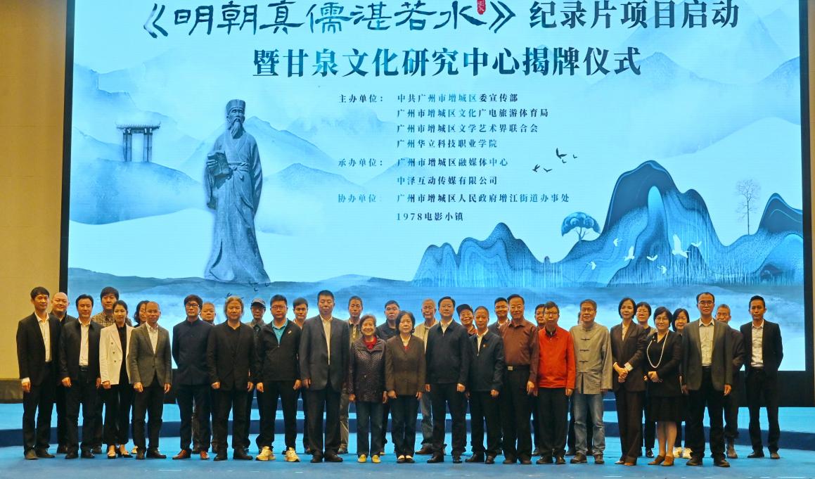 好雨知時(shí)節(jié),春雨潤(rùn)增江。3月26日上午,廣州華立科技職業(yè)學(xué)院聯(lián)合增城區(qū)委宣傳部、區(qū)文化廣電旅游體育局、區(qū)文聯(lián)等單位,在增城區(qū)1978電影小鎮(zhèn)演藝中心隆重舉行《明朝真儒湛若水》紀(jì)錄片項(xiàng)目啟動(dòng)暨廣州華立科技職業(yè)學(xué)院甘泉文化研究中心揭牌儀式。廣州市增城區(qū)委常委、宣傳部部長(zhǎng)廖平,中國(guó)新聞社廣東分社黨委書(shū)記、社長(zhǎng)張見(jiàn)悅等領(lǐng)導(dǎo)出席,來(lái)自北京大學(xué)、中國(guó)人民大學(xué)、中國(guó)傳媒大學(xué)、中國(guó)科學(xué)院大學(xué)、華南師范大學(xué)、廣東財(cái)經(jīng)大學(xué)、廣州大學(xué)等多所國(guó)內(nèi)知名高校以及來(lái)自廣東省嶺南心學(xué)研究會(huì)、廣東文史學(xué)會(huì)、廣東省老子文化學(xué)會(huì)等學(xué)術(shù)團(tuán)體的專家學(xué)者參加揭牌儀式。學(xué)校黨委書(shū)記陳良聲、常務(wù)副校長(zhǎng)馬俊、馬克思主義學(xué)院院長(zhǎng)廖良初、部分中層干部、全體思政課教師以及部分學(xué)生代表參加。