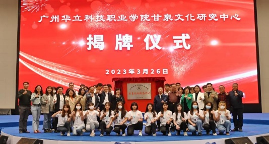 高校與地方政府協(xié)同聯(lián)動(dòng),共同打造甘泉文化品牌,構(gòu)建育人高地。在現(xiàn)場(chǎng)領(lǐng)導(dǎo)嘉賓和行業(yè)專家學(xué)者的見(jiàn)證下,廣州華立科技職業(yè)學(xué)院甘泉文化研究中心隆重揭牌。