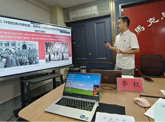 在教學(xué)展示環(huán)節(jié),新入職教師李權(quán)以“毛澤東思想的形成過(guò)程”為題、黃勇以“擔(dān)當(dāng)民族復(fù)興大任、成就時(shí)代新人”為題,分別圍繞《毛澤東思想和中國(guó)特色社會(huì)主義理論體系概論》和《思想道德與法治》兩門(mén)課程內(nèi)容開(kāi)展首課講課演示。他們按照課程教學(xué)標(biāo)準(zhǔn),立足學(xué)生認(rèn)知特點(diǎn),綜合運(yùn)用知識(shí)講解、案例分析、多媒體演示等教學(xué)手段,力求抽象理論的具象化和表達(dá)方式的通俗化,講課試煉的效果良好,既顯示出他們具備一定的專(zhuān)業(yè)教學(xué)素質(zhì),也展現(xiàn)出作為一名高校年輕教師積極向上的青春朝氣和個(gè)人氣質(zhì)。