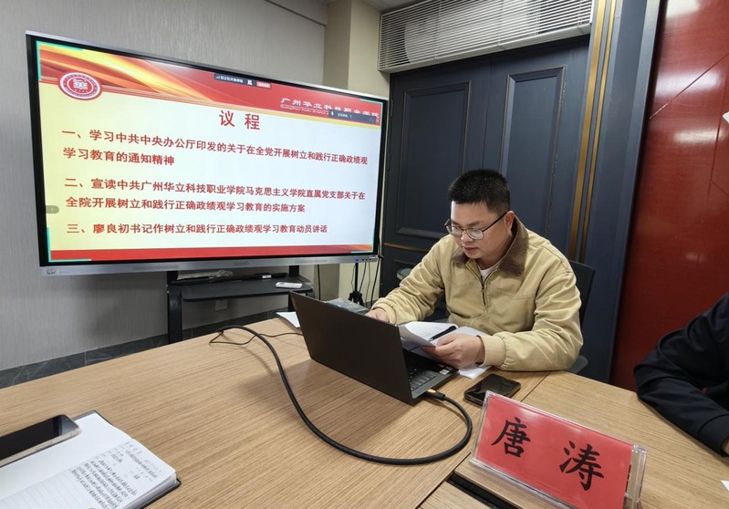 隨后,支部組織委員唐濤同志宣讀《中共廣州華立科技職業(yè)學(xué)院馬克思主義學(xué)院支部委員會(huì)關(guān)于在全院開展樹立和踐行正確政績(jī)觀學(xué)習(xí)教育的實(shí)施方案》。方案圍繞總體要求、工作專班、工作重點(diǎn)、工作要求等方面作出全面部署,明確了本次“學(xué)習(xí)教育”的覆蓋范圍、時(shí)間安排,劃定了深化學(xué)習(xí)研討、查擺問題、整改落實(shí)、建章立制、開門教育五大工作重點(diǎn),并公布了“學(xué)習(xí)教育”工作安排表。