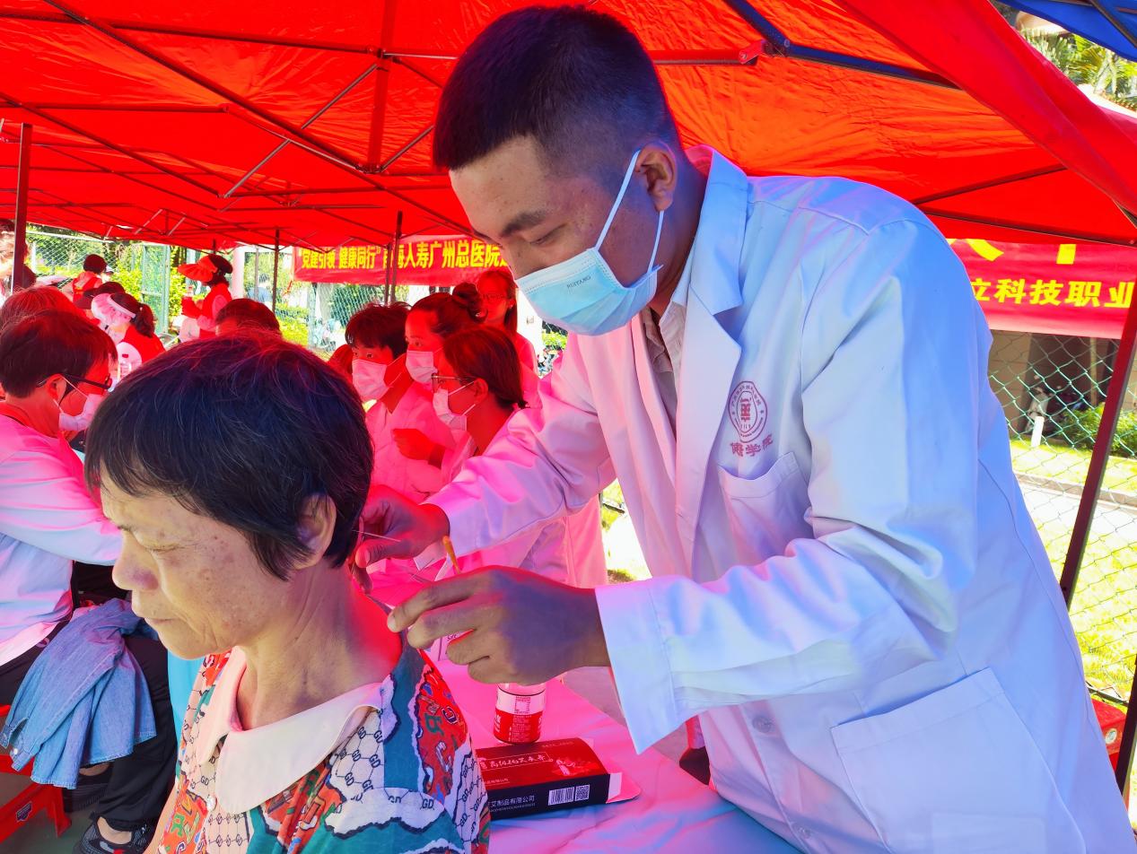 本次義診活動陣容強大,涵蓋了前海人壽廣州總醫(yī)院的心血管內(nèi)科、康復醫(yī)學科、腎內(nèi)科等多個專家團隊,分別為社區(qū)群眾免費提供測血壓和血糖、健康咨詢、藥品免費發(fā)放等服務,我院黨員教師及學生志愿者還提供了中醫(yī)適宜技術體驗。