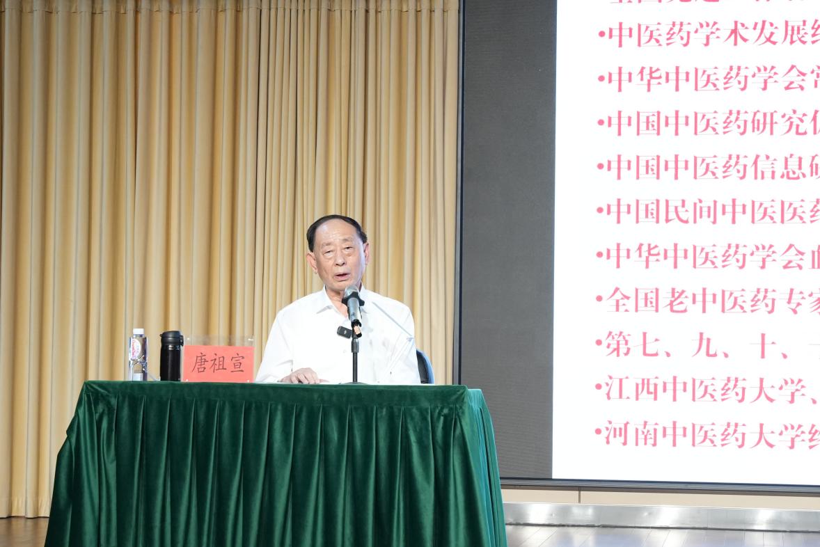 講座現(xiàn)場(chǎng),唐祖宣向?qū)W校師生分享了自己出身基層、拜師求學(xué)、從醫(yī)的經(jīng)歷,暢談自己的名醫(yī)之路、學(xué)醫(yī)感悟,用自身的豐富的國醫(yī)之路歷程指引青年學(xué)子在行醫(yī)之路上應(yīng)修醫(yī)德、行仁術(shù)、鑄醫(yī)魂,用自身的臨床實(shí)踐詳細(xì)論述了溫陽法在臨床治療中的應(yīng)用。