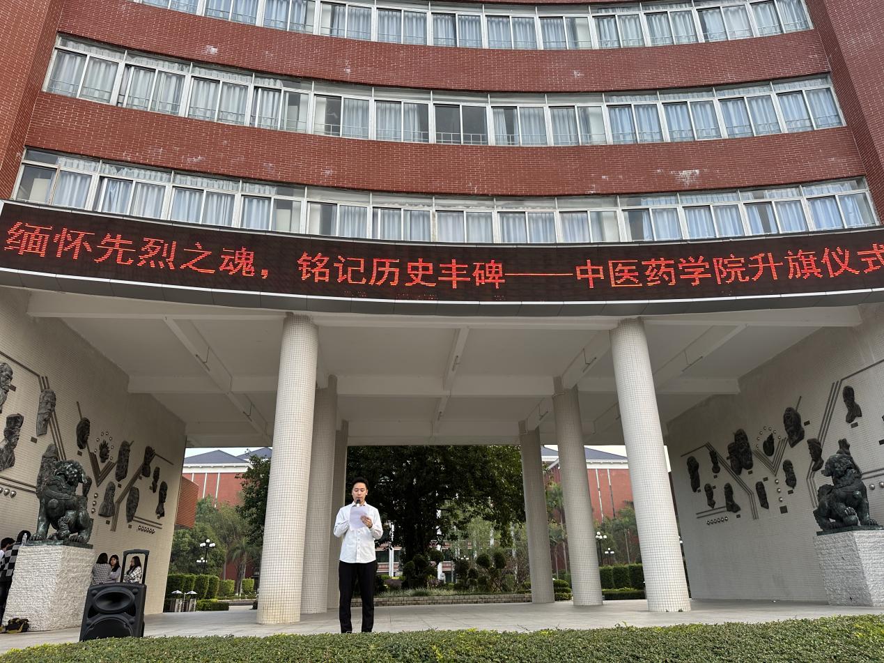 2023年12月13日是南京大屠殺的86周年紀(jì)念日。為加強(qiáng)青年學(xué)生的愛國主義教育,鼓勵(lì)大學(xué)生進(jìn)一步堅(jiān)定政治立場,牢記歷史,勿忘國恥,樹立遠(yuǎn)大革命理想和崇高人生信念,教育廣大學(xué)生不斷增強(qiáng)社會(huì)責(zé)任感和使命感。12月11日,中醫(yī)藥學(xué)院在綜合樓廣場前舉行了升旗儀式,國旗下的講話主題有“緬懷先烈之魂,銘記歷史豐碑”和“誠信考試教育”。出席此次活動(dòng)的有:中醫(yī)藥學(xué)院直屬黨支部書記曾祥彪老師、中醫(yī)藥學(xué)院直屬黨支部專職副書記徐劍輝老師、全體輔導(dǎo)員以及中醫(yī)藥學(xué)院22級(jí)、23級(jí)全體同學(xué)。