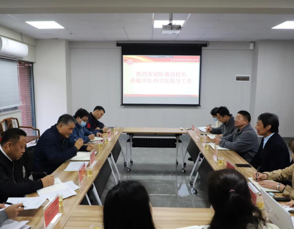 2024年1月2日上午,校長陳德清教授于新年上班第一天率隊(duì)到中醫(yī)藥學(xué)院進(jìn)行調(diào)研,就學(xué)院基本情況及相關(guān)問題進(jìn)行深入調(diào)研、把脈問診。人事處處長鐘文浩、實(shí)訓(xùn)中心主任張磊、副主任陳永聰、校辦文秘科科長楊濤等陪同,中醫(yī)藥學(xué)院領(lǐng)導(dǎo)、各線主任、系(室)主任、副高職稱以上教師代表等在G1-212會(huì)議室參加調(diào)研會(huì)。會(huì)議由學(xué)院院長楊欽河教授主持。