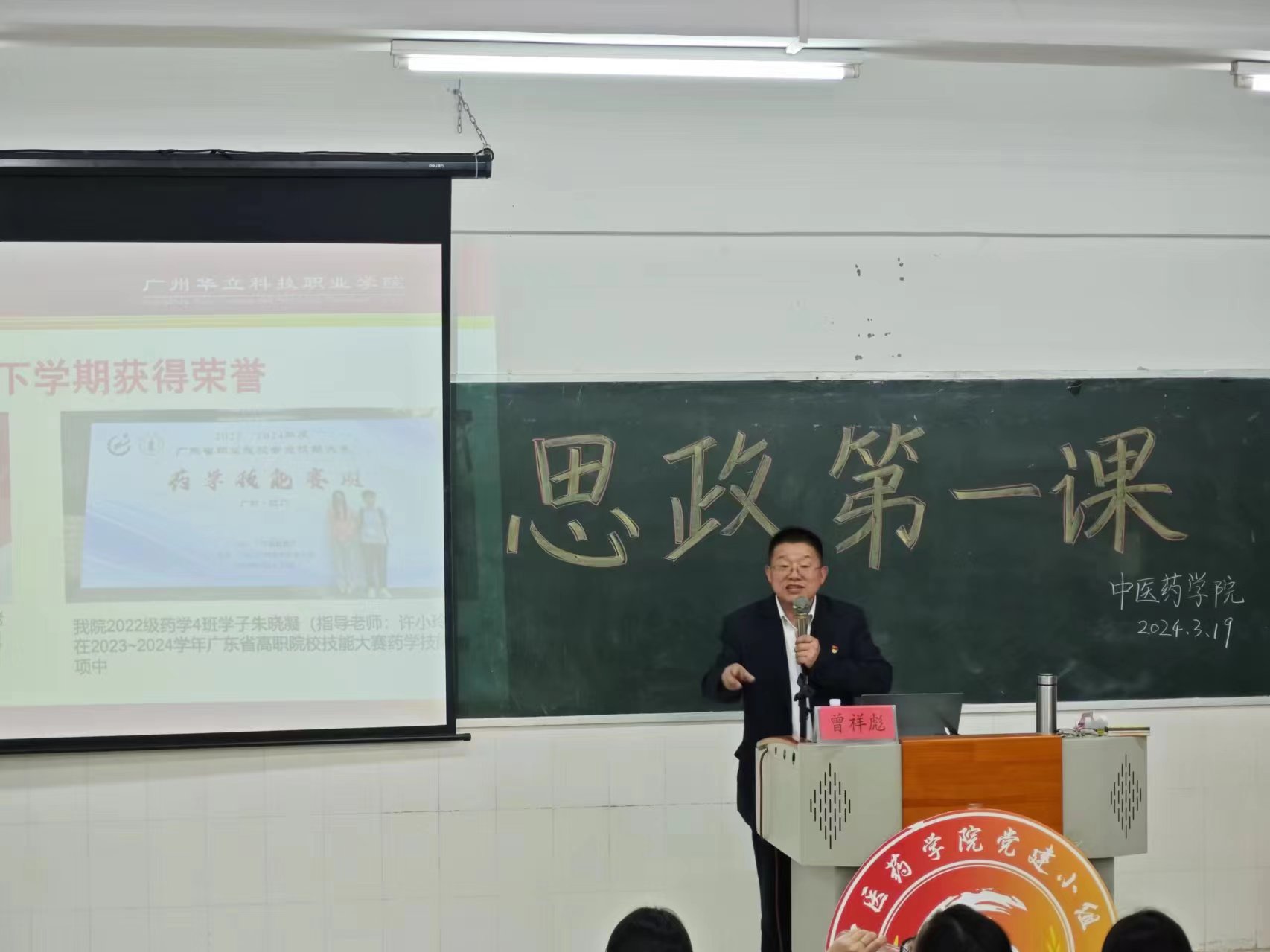 為深入學(xué)習(xí)貫徹習(xí)近平總書記關(guān)于職業(yè)教育工作的重要指示批示精神和兩會(huì)精神,切實(shí)做好學(xué)生的思想引領(lǐng),3月19日晚在圖書館304教室,中醫(yī)藥學(xué)院直屬黨支部書記曾祥彪以“學(xué)習(xí)貫徹兩會(huì)精神,扎實(shí)推動(dòng)學(xué)院高質(zhì)量發(fā)展”為主題,為黨建小組全體干部、各年級(jí)各專業(yè)的學(xué)生約160人講授了2024年春季學(xué)期書記思政第一課。思政第一課由黨建小組指導(dǎo)老師曾玉梅主持。
