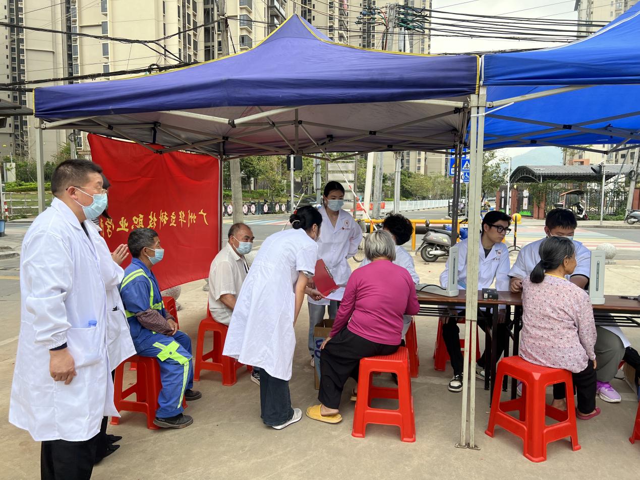 活動當(dāng)天,各單位在新聯(lián)村村委會門口一字排開進(jìn)行設(shè)點(diǎn),我們的中醫(yī)理療服務(wù)受到了極大的歡迎。起初,“要不要錢呀?”“我最近肩膀很痛,能不能幫我按一下?”,路過的居民多為老年人,他們因擔(dān)心需要付費(fèi)而不敢靠近。黨員積極引導(dǎo)路過的居民,打消他們的顧慮,這才使得居民積極的參與到服務(wù)中。