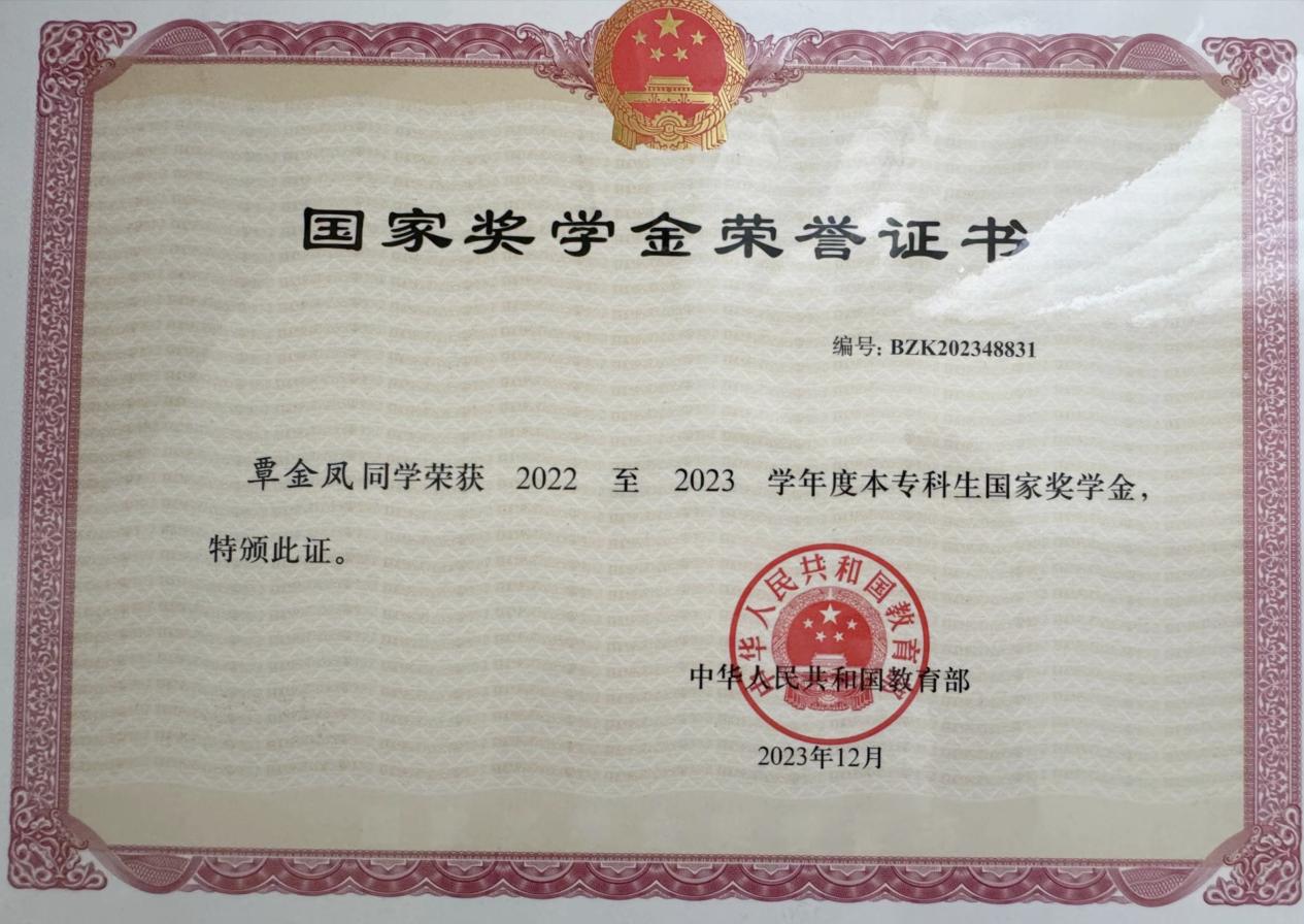 覃金鳳,21中醫(yī)3班,中共預(yù)備黨員,現(xiàn)在暨南大學(xué)附屬第一醫(yī)院實習(xí)。在校期間,曾獲得優(yōu)秀學(xué)生干部、優(yōu)秀迎新志愿者、優(yōu)秀輔導(dǎo)員助理、好書分享人等多項榮譽稱號;并獲得了優(yōu)秀學(xué)生一等獎學(xué)金、華立職院獎學(xué)金、國家獎學(xué)金;在競賽方面,獲得“全國大學(xué)生英語翻譯大賽”高職高專組省級三等獎、“2023年‘BEET杯’全國大學(xué)生英語閱讀大賽”三等獎、“第十二屆贏在廣州暨粵港澳大灣區(qū)大學(xué)生創(chuàng)業(yè)”校賽一等獎等20項。