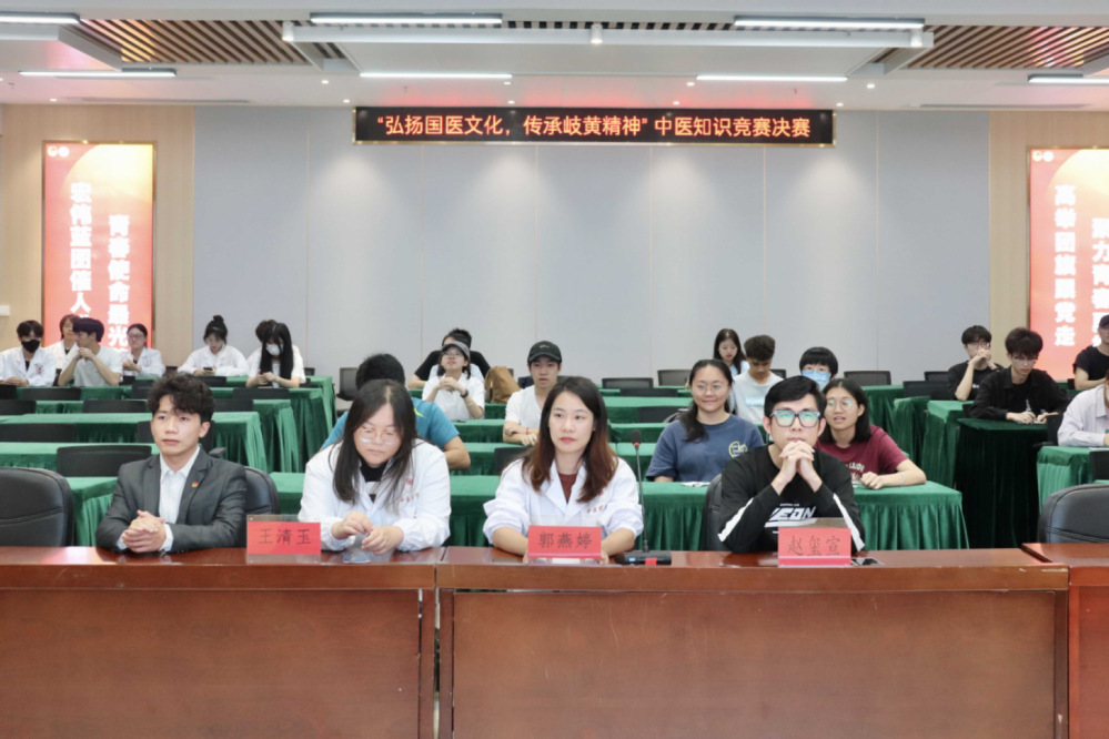 此次中藥知識(shí)首先由郭燕婷主任做賽前動(dòng)員講話,指出本次中醫(yī)藥基礎(chǔ)知識(shí)競(jìng)賽的初衷是為學(xué)院優(yōu)秀人才提供相互學(xué)習(xí)交流的平臺(tái),提升同學(xué)們的中醫(yī)藥知識(shí)水平,激發(fā)同學(xué)們的學(xué)習(xí)熱情。隨后進(jìn)入決賽環(huán)節(jié)。