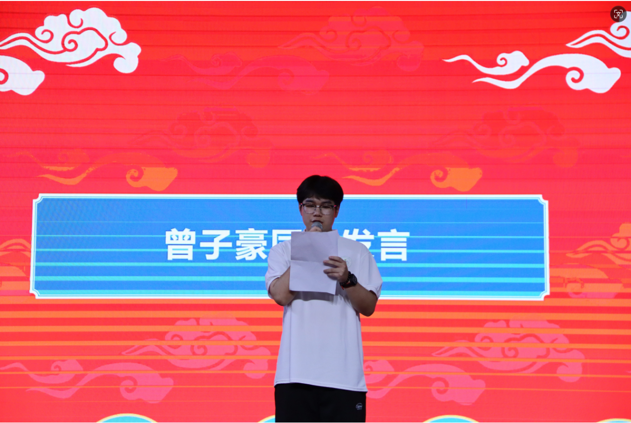 圖為 學(xué)生會干部代表曾子豪發(fā)言