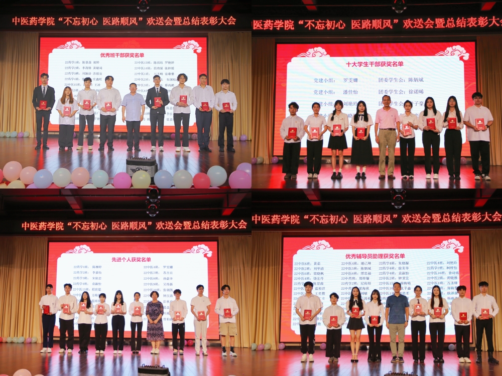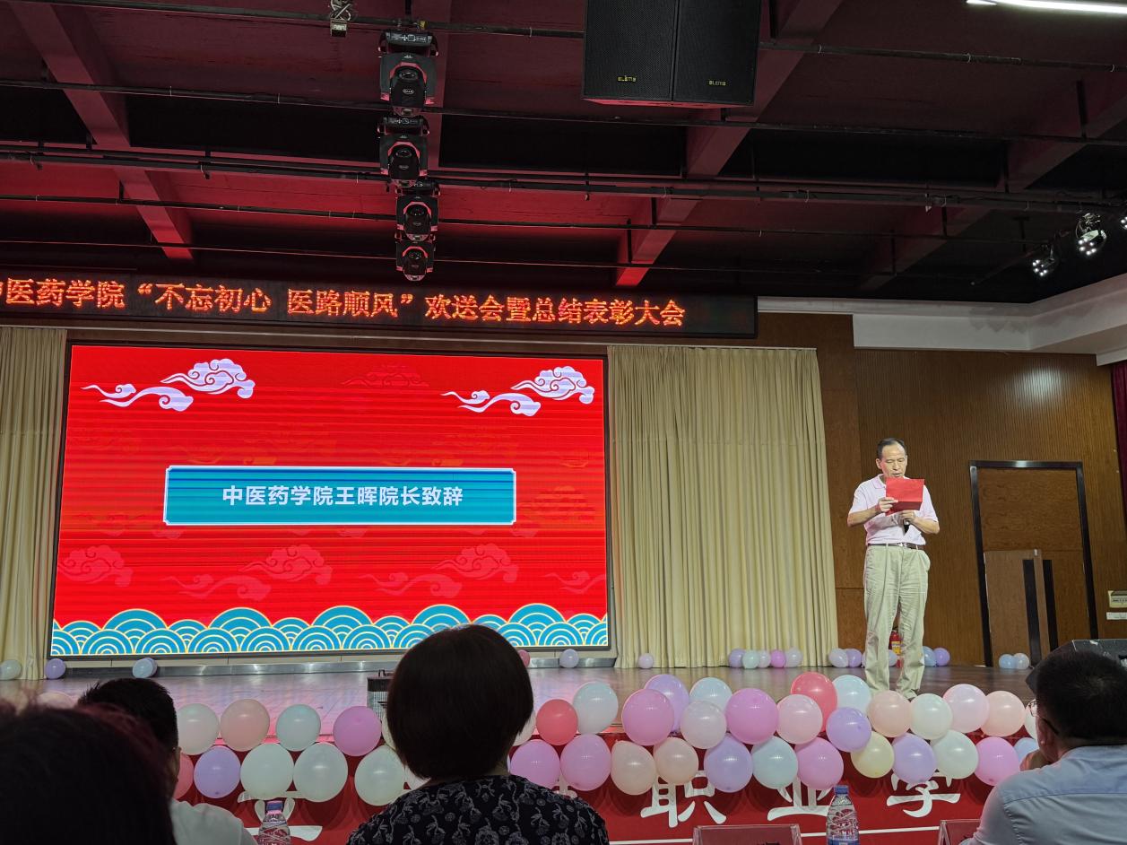 二載勵志苦讀,一朝鯤鵬展翅。6月13日晚上,中醫(yī)藥學(xué)院在圖書館八樓為2022級學(xué)生舉行了歡送會暨總結(jié)表彰大會。蒞臨此次大會的有中醫(yī)藥學(xué)院王暉院長,中醫(yī)藥學(xué)院直屬黨支部書記曾祥彪老師,中醫(yī)藥學(xué)院副院長張志勇老師,中醫(yī)藥學(xué)院辦公室主任李遠(yuǎn)興老師,中醫(yī)藥學(xué)院學(xué)管主任陳輝老師,以及中醫(yī)藥學(xué)院的輔導(dǎo)員、各科任老師和各班學(xué)生代表共同見證了2022級學(xué)子即將踏入社會實(shí)習(xí)的期待和忐忑,為他們開啟了未來的追夢之路壯行。大會由林敬潤、虞佳慧同學(xué)主持。