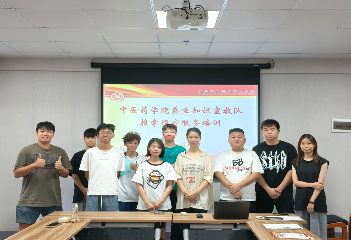 圖為 中醫(yī)院學(xué)院養(yǎng)生知識(shí)宣教隊(duì)推拿理療培訓(xùn)照片