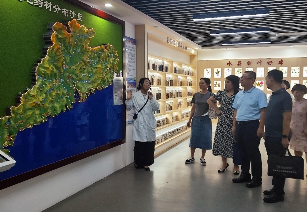 省教育廳領(lǐng)導(dǎo)及學(xué)校各部門負(fù)責(zé)人到我校中藥標(biāo)本館進(jìn)行了實地參觀指導(dǎo),通過景曉彤老師對中藥材浸液標(biāo)本展示區(qū)、水晶蠟葉標(biāo)本展示區(qū)、生藥標(biāo)本展示區(qū)、真?zhèn)嗡幉蔫b別標(biāo)本展示區(qū)、蠟葉標(biāo)本展示區(qū)、動物標(biāo)本展示區(qū)的介紹,宣揚(yáng)“以人為本,懸壺濟(jì)世”的中藥傳統(tǒng)文化。