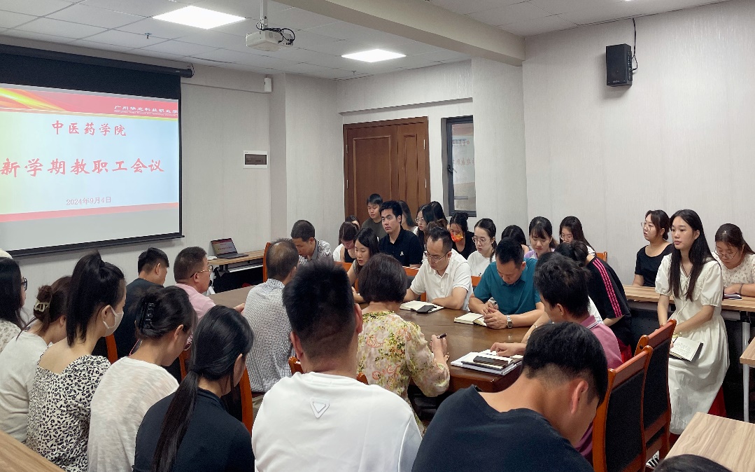 為學習貫徹黨的二十屆三中全會精神,全面抓好學院新學期的各項工作,提高人才培養(yǎng)質(zhì)量。中醫(yī)藥學院于8月26日和9月3日分別舉行了教學分享培訓會和新學期教職工兩場會議均在G1-212會議室舉行,中醫(yī)藥學院院長王暉,學院直屬黨支部書記、副院長曾祥彪,副院長張志勇以及全體教師參加了會議。