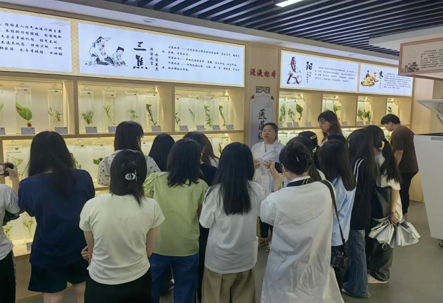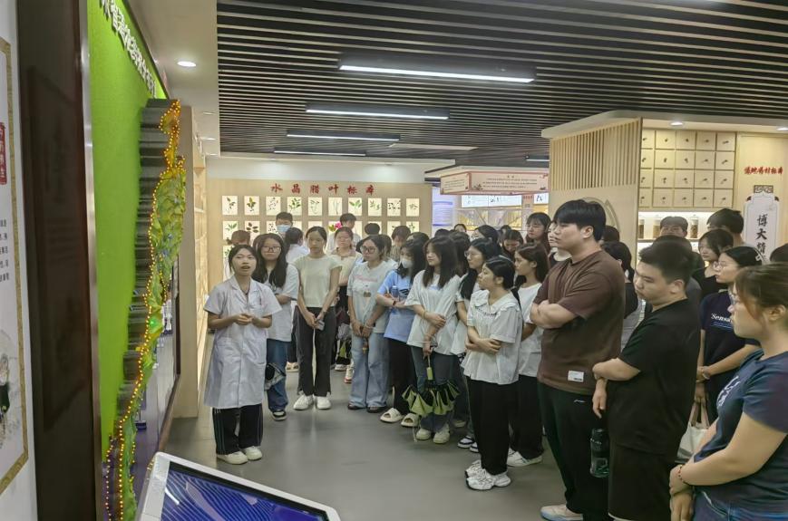 走進(jìn)標(biāo)本館,里面陳列著各式各樣的中藥標(biāo)本,從常見的金銀花、枸杞,到珍稀的鹿茸,每一份標(biāo)本都標(biāo)注著詳細(xì)的名稱、性味歸經(jīng)及功效主治。隨后,新生們跟隨講解員的步伐,來到互動(dòng)體驗(yàn)區(qū)。在這里,他們可以親手觸摸模擬的中藥材,通過AR技術(shù)直觀感受藥材的生長環(huán)境及炮制過程。