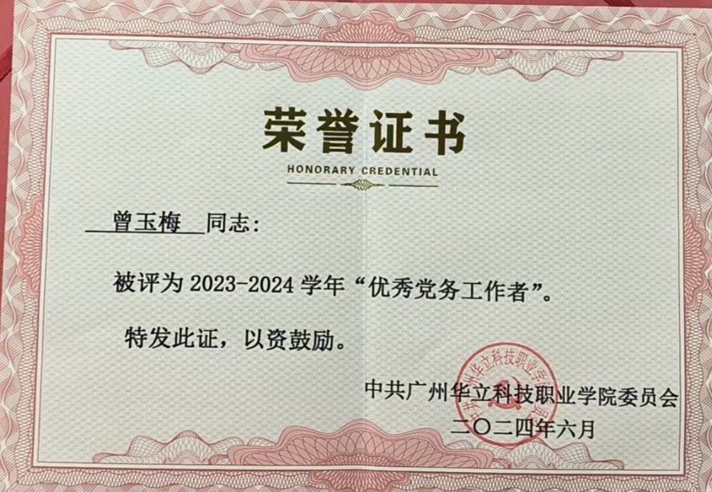 曾老師在擔(dān)任廣州華立科技職業(yè)學(xué)院中醫(yī)藥學(xué)院直屬黨支部宣傳委員期間,她以高度的政治責(zé)任感和使命感,默默耕耘在黨務(wù)工作的第一線。她深知作為一名黨務(wù)工作者,必須時刻保持對黨的忠誠和對人民的熱愛,用實(shí)際行動詮釋著黨性的光輝。