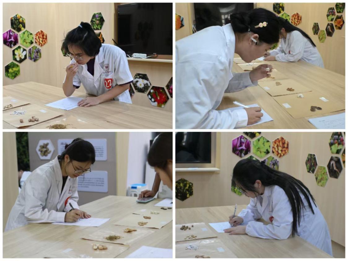 比賽時(shí),同學(xué)們面對(duì)各類中藥材標(biāo)本,通過(guò)觀察其外形、色澤、氣味等特征,結(jié)合所學(xué)理論知識(shí),判斷藥材的名稱、產(chǎn)地、功效等信息。整個(gè)比賽過(guò)程緊張有序,同學(xué)們?nèi)褙炞?、冷靜應(yīng)對(duì),展示了扎實(shí)的專業(yè)知識(shí)。評(píng)委老師們嚴(yán)格按照評(píng)分標(biāo)準(zhǔn)打分,確保比賽結(jié)果公平公正。