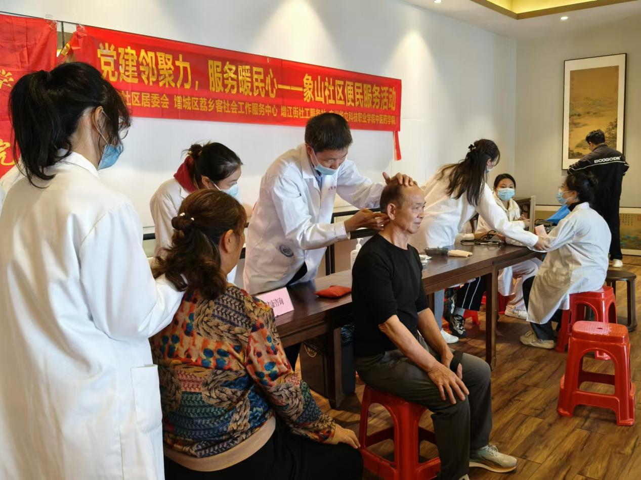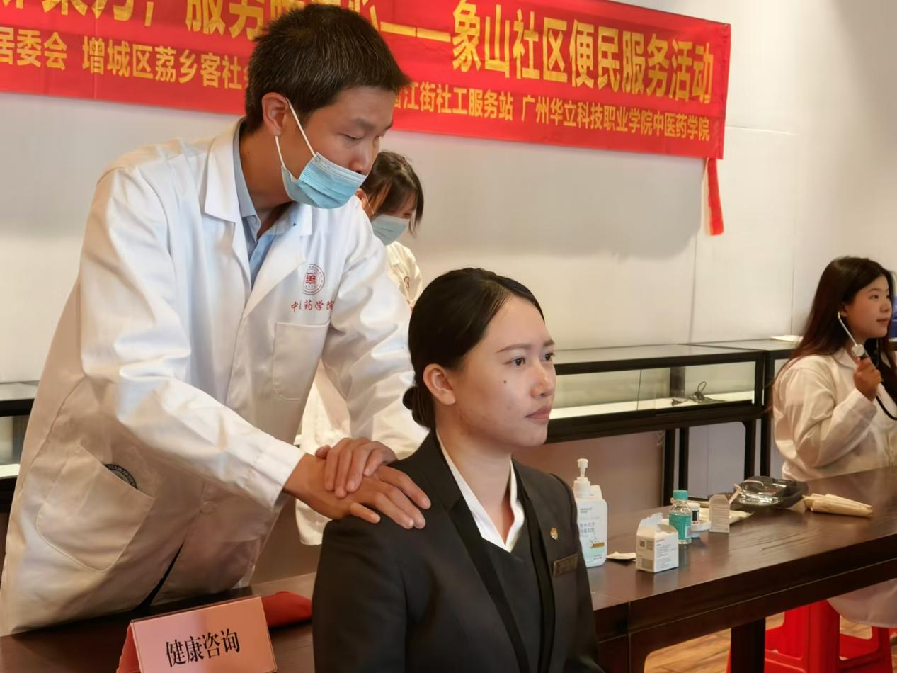 為進(jìn)一步弘揚(yáng)中醫(yī)健康文化、普及中醫(yī)藥健康養(yǎng)生知識(shí),11月22日上午,在增江街社工站的組織下,由學(xué)院潘菽弢博士、團(tuán)委書記謝梓婷老師帶隊(duì),入黨積極分子及學(xué)生干部組成的中醫(yī)理療服務(wù)隊(duì)前往廣州院子與MG私人定制共同開(kāi)展“黨建鄰聚力,服務(wù)暖人心”象山社區(qū)便民服務(wù)活動(dòng)。