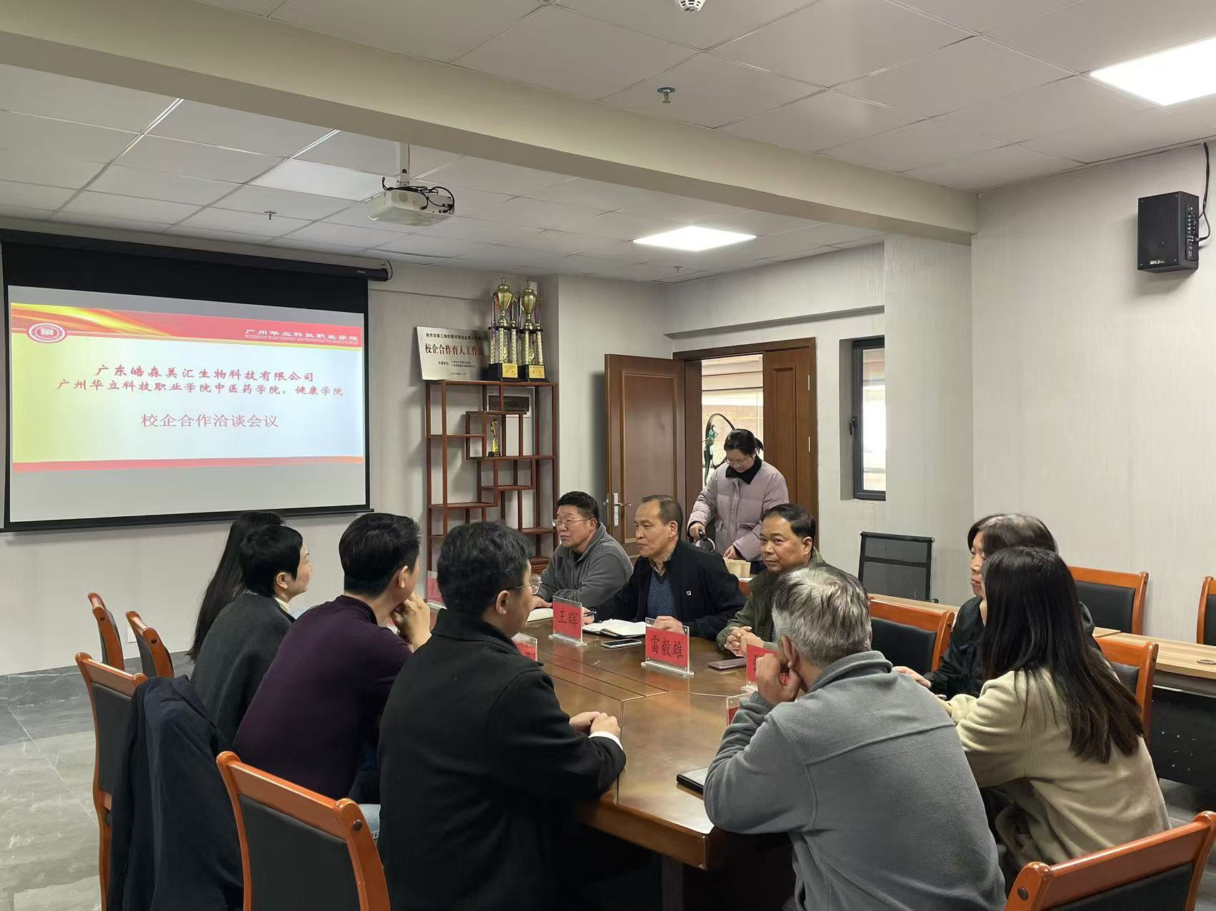 2024年1月7日,中醫(yī)藥學(xué)院邀請(qǐng)廣東皓森美匯生物科技有限公司董事長(zhǎng)李小燕、總裁劉卓勇、副總裁郭曉晴到校進(jìn)行校企合作洽談,我院王暉院長(zhǎng)、曾祥彪副院長(zhǎng)、張志勇副院長(zhǎng)、健康學(xué)院雷毅雄院長(zhǎng)及相關(guān)專業(yè)教師參會(huì)。