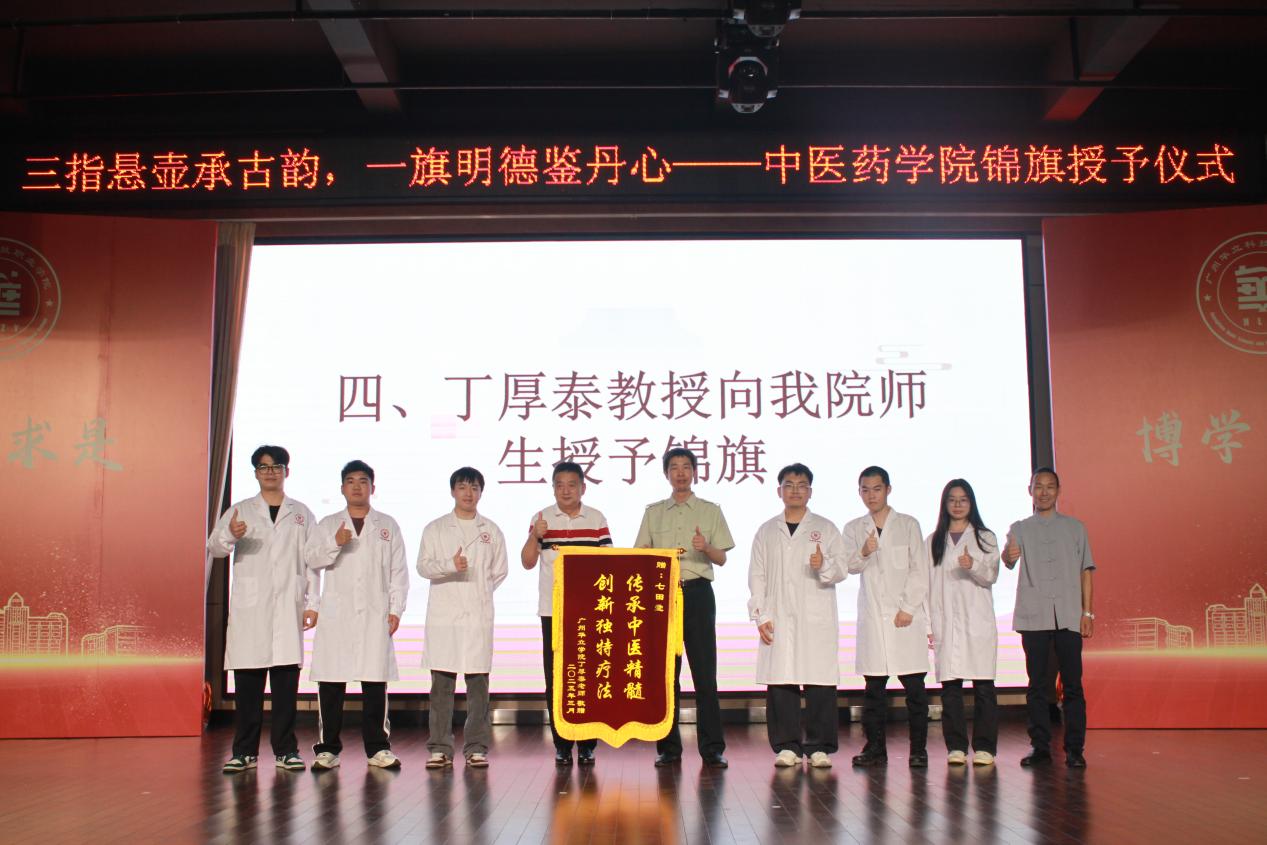 丁厚泰教授有多年腰椎頑疾,團(tuán)隊(duì)成員通過中醫(yī)療法對丁教授進(jìn)行調(diào)理。調(diào)理過程主要分兩期進(jìn)行,采用方式為內(nèi)調(diào)外治,分別是中藥藥飲和推拿艾灸,在丁教授的積極配合下,極大地改善了困擾多年的腰椎問題。帶著一顆感恩的心,帶著從病痛折磨中獲得解放的喜悅,丁教授將一面“傳承中醫(yī)精髓,創(chuàng)新獨(dú)特療法”的錦旗,親自交到中醫(yī)藥學(xué)院師生手中,以此來感謝團(tuán)隊(duì)成員的精湛醫(yī)術(shù)。這面錦旗不僅是對醫(yī)者仁心的贊譽(yù),更是對中醫(yī)師承教育模式的生動肯定。